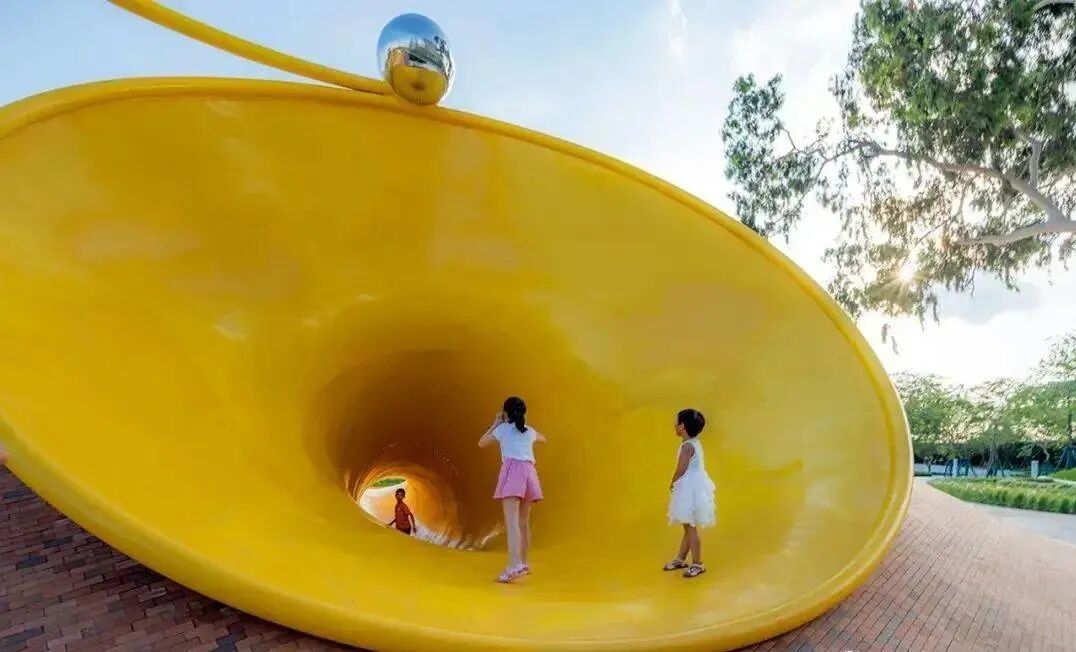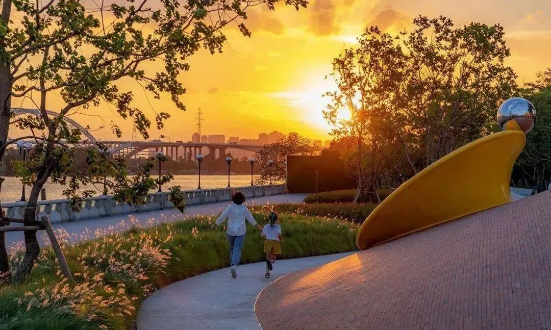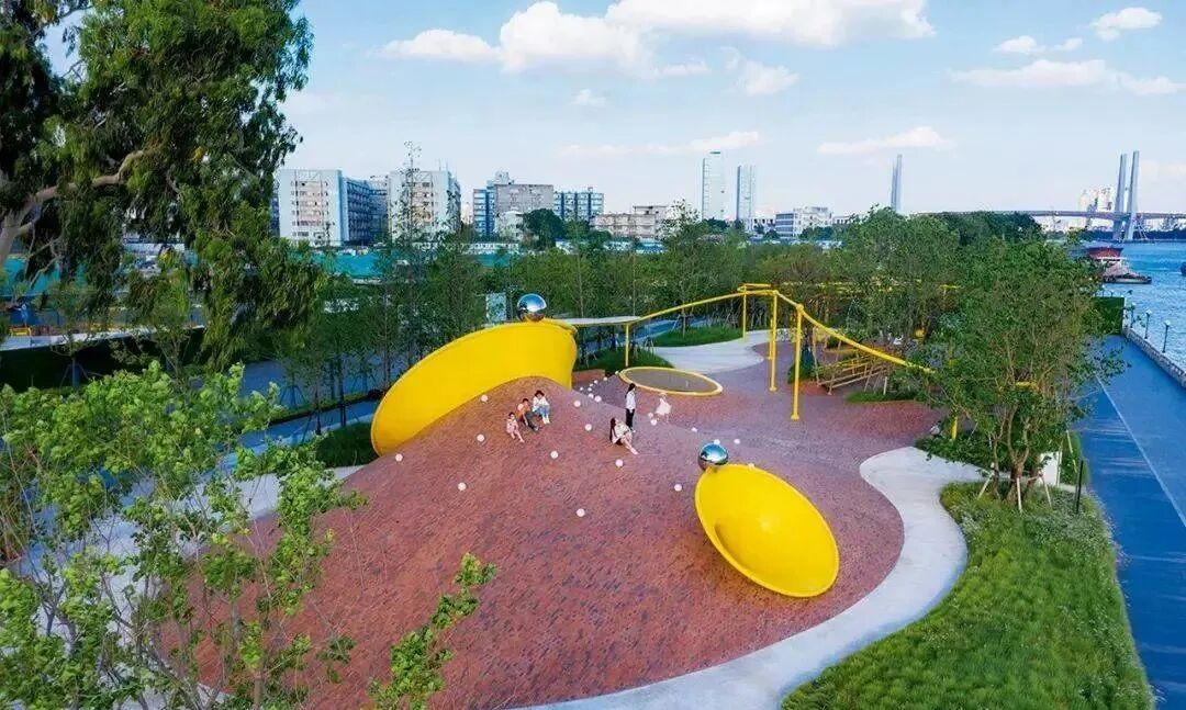 位于珠江河畔的一个满载欢乐的儿童乐园,它没有较重的设施感,是以简洁艺术、去形象化的方式打造的简单轻松又不失想象的空间。设计团队用红砖打造起伏的地形,将玩法融于场地,提倡空间即游戏,游戏即空间。乐园秉承为儿童而设计以及全龄乐融的理念,以“海宝”为原型创造了一个儿童游乐空间,不以具象的形象表达,而以抽象的形式存在,吸引着各个年龄段的人群。