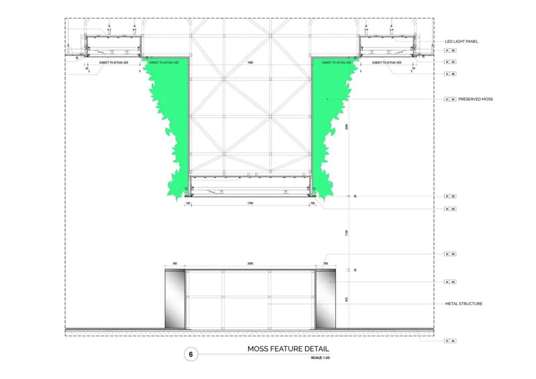 摒弃了传统的奢华概念,转而采用极简主义的方法,空间的中心是对一棵从地板一直延伸到天花板的活树的抽象诠释,就像科幻实验室里生长的实验一样。苔藓覆盖的装置的有机轮廓与商店的开放式平面布局形成了平静的对比,旨在将建筑与雕塑融合,赋予空间独特的个性。