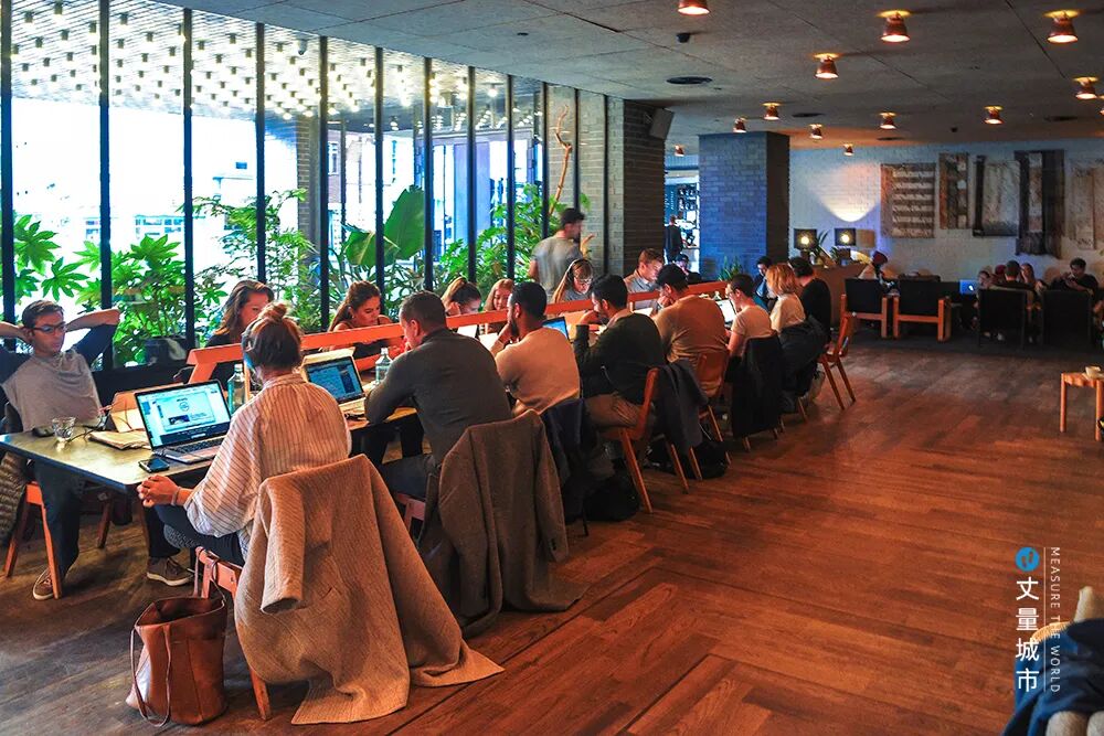 ▼ 伦敦东部科技城的咖啡厅内,聚集的科创工作者们