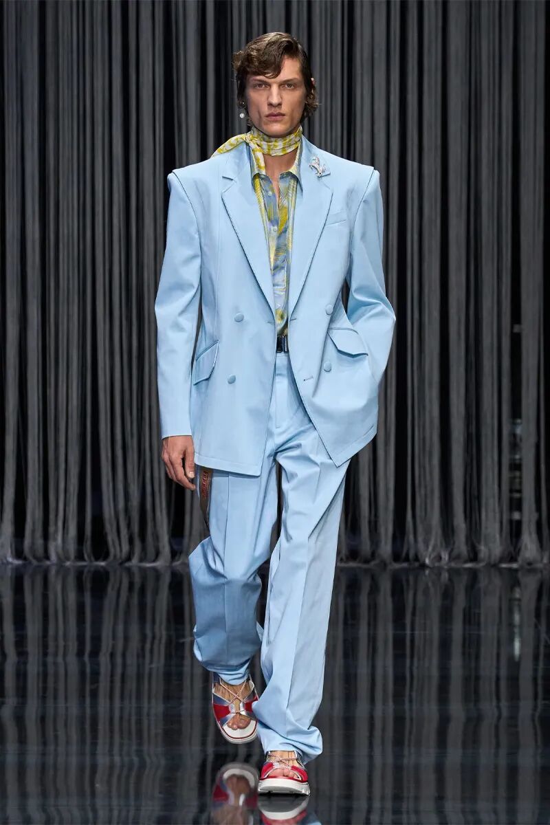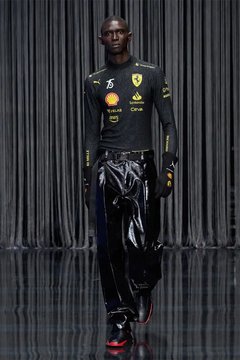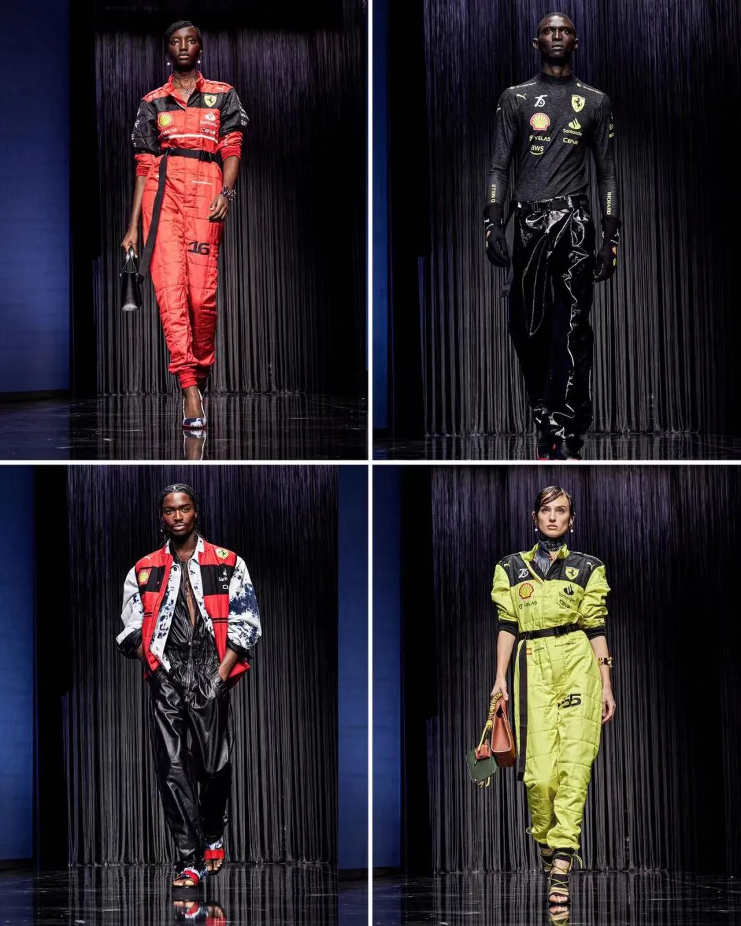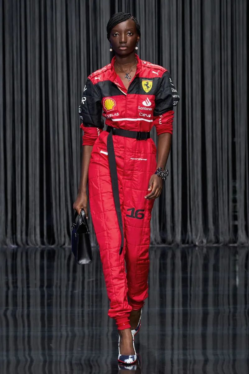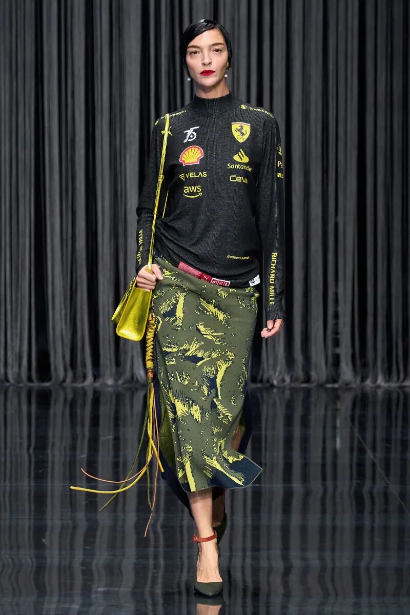 整体橄榄绿色的造型带来了工装机能风格,也凸显了服装绝妙的质感。