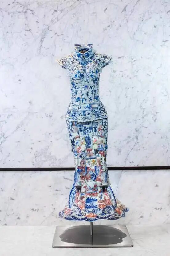 这两件精巧细致的艺术品《城市探索者》和《华丽永恒》,是艺术家李晓峰采用创新的艺术形式,选取明清时期乃至更早的老瓷片制作出的艺术品,通过古代生活的遗存,发现和赋予他们新的生命,来展现中国服饰理念。