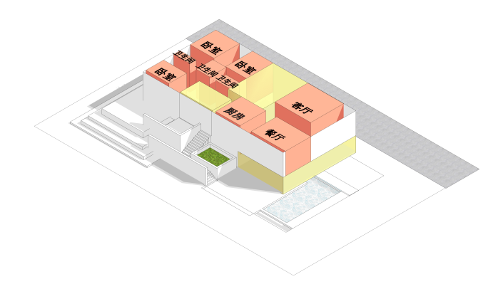 同时,根据使用需求,将住宅的主要功能空间进行分布。