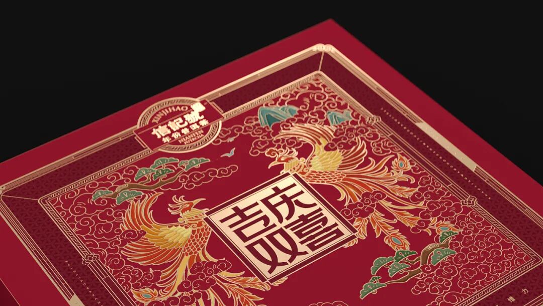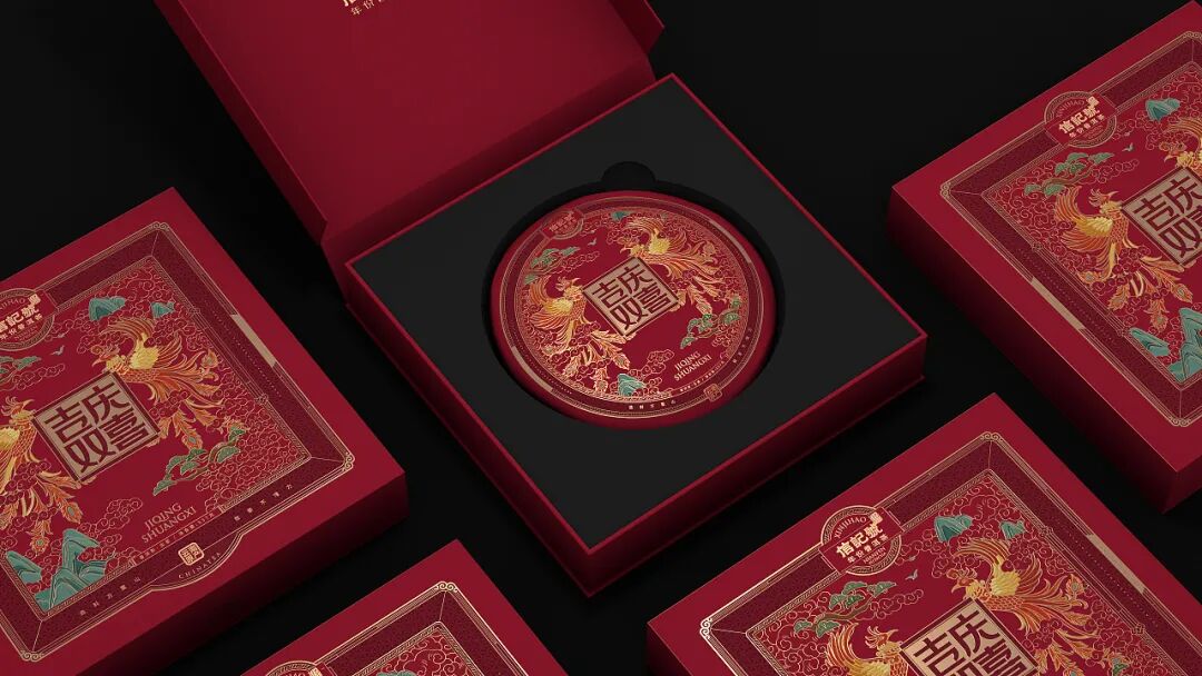 通过对称布局的形式展现祥瑞庆贺双喜的画面