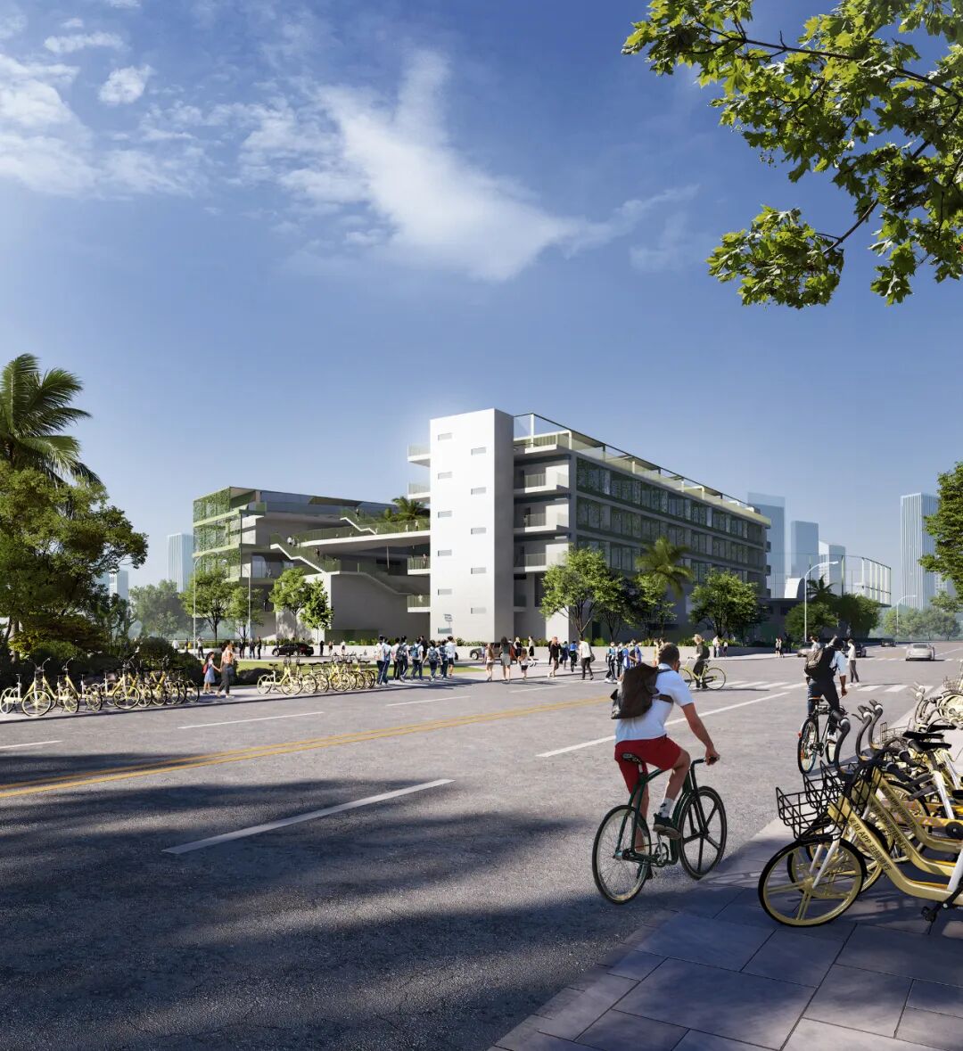 ▲ 校园东端的多层平台形成了开放的城市形象