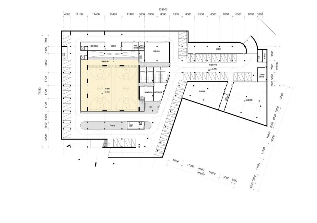 ▲ 地下一层平面图(体育馆,地下车库与学生接送区)
