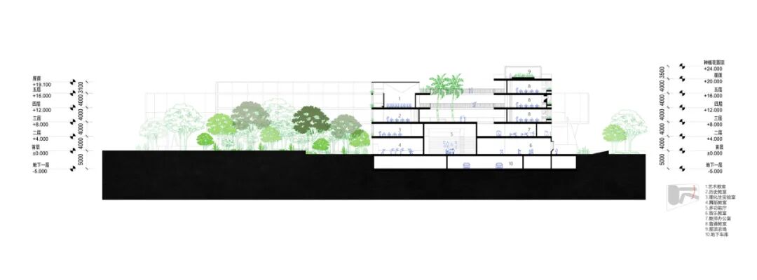 ▲ 剖面图(校园与保留雨林关系)