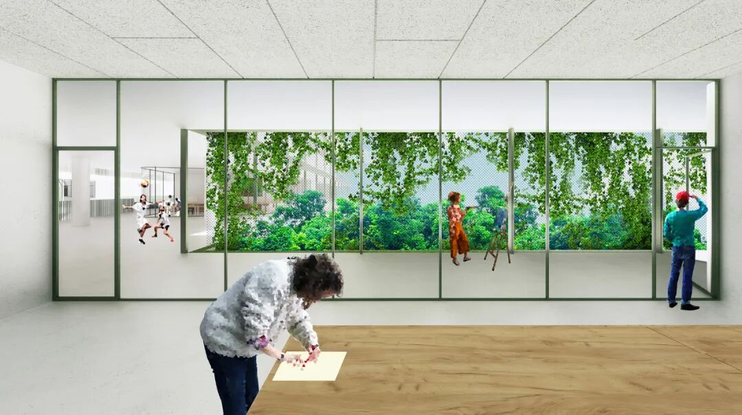 ▲ 领结轴线为所有教室都带来户外活动场地