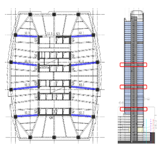我们的结构工程师综合考虑动力特性调整对建筑功能、机电综合等其他专业的影响,通过结构优化分析,对局部刚度敏感构件加强及减弱,在满足主体结构自振周期控制的同时,最大限度保证了建筑功能和净高实现。