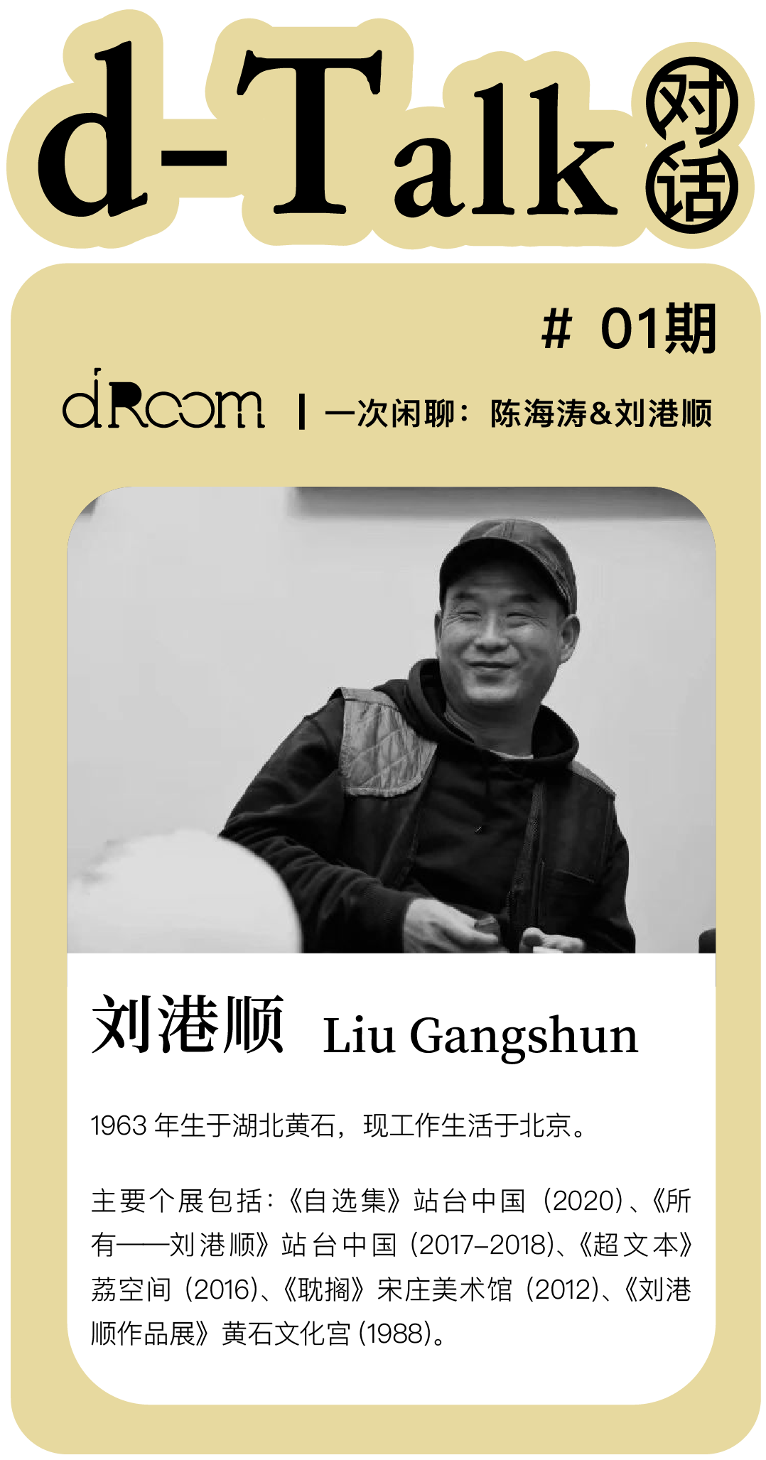 dRoom-Talk (d-Talk) is a new column held by the Platform China-dRoom Project, providing a place for artists and art practitioners to talk and to communicate. Conversation is like running water, running water does not rot.
