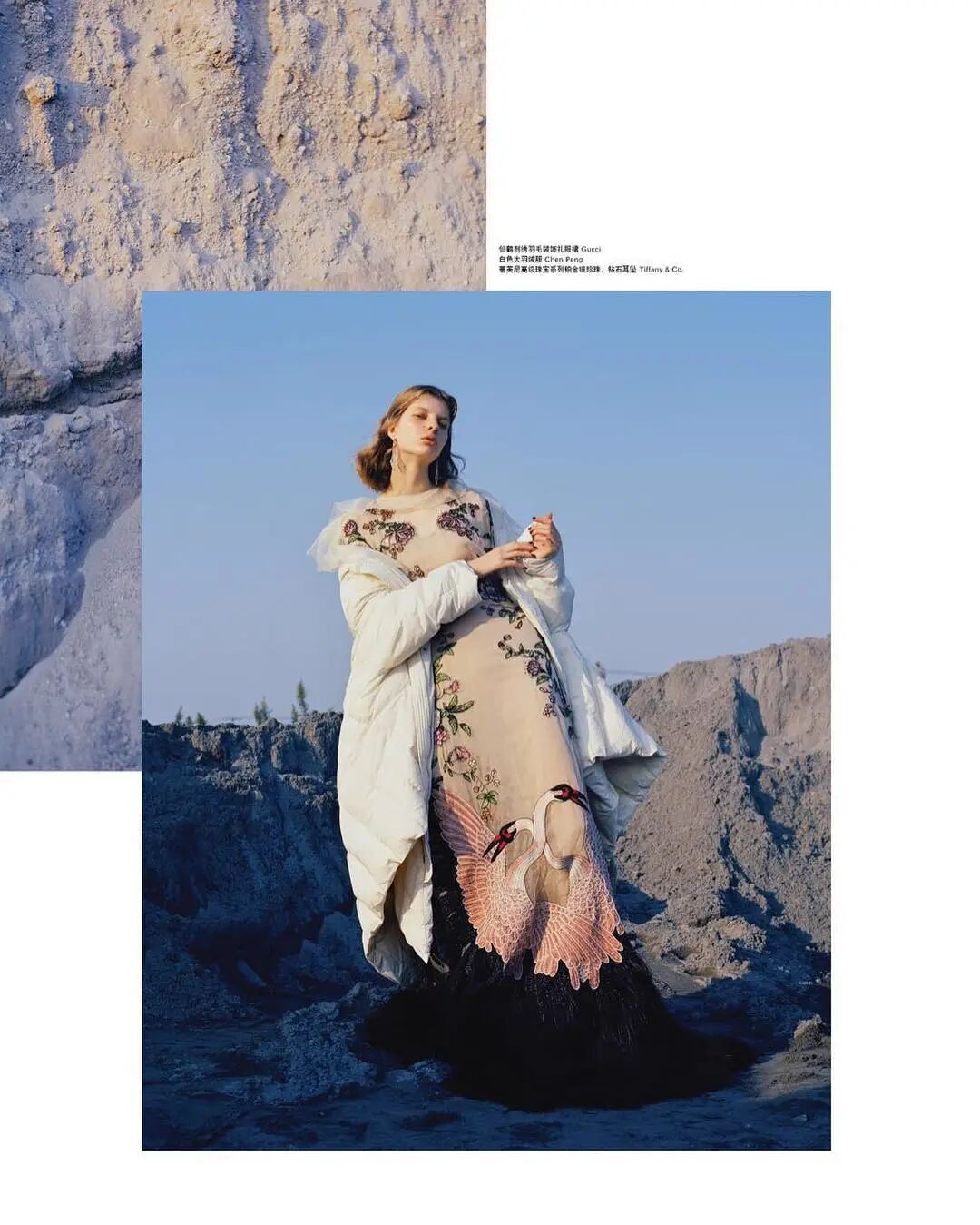 同时,这个以爱为名的系列,以象征爱与永恒的玫瑰为核心元素,并将八套羽绒礼裙以花木兰等标志性缪斯的名字命名,期待通过时装艺术塑造一系列传奇缪斯的浪漫故事,启发大众对于浪漫的全新思考。