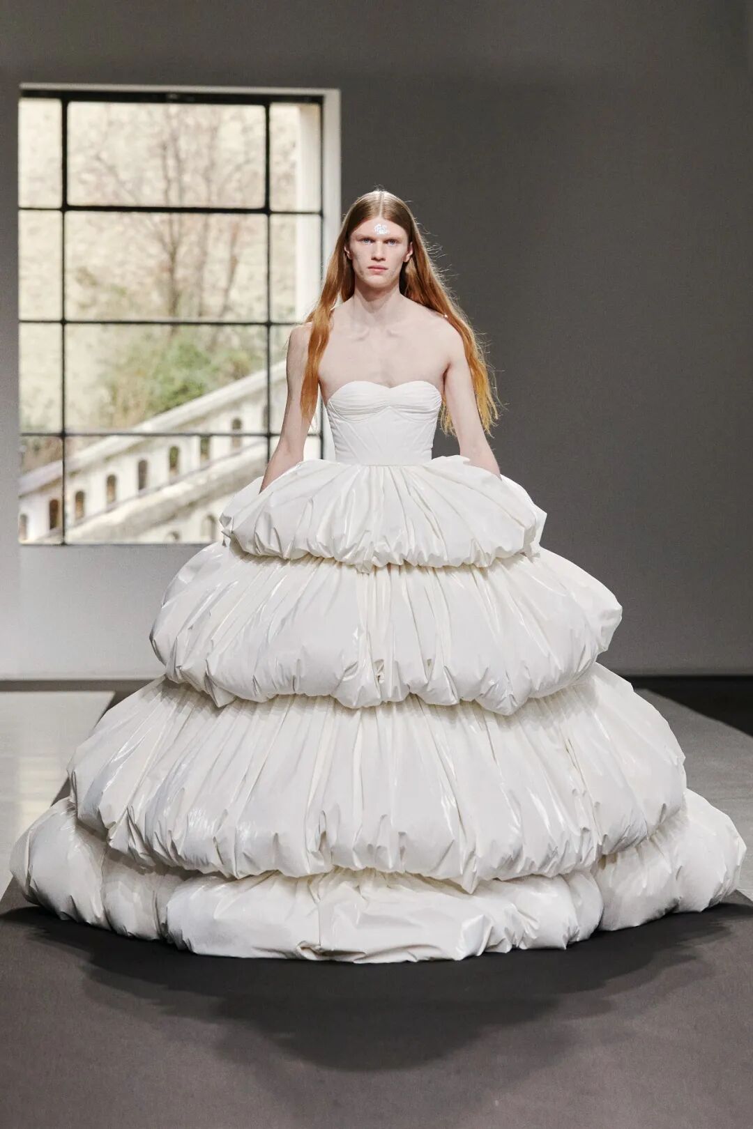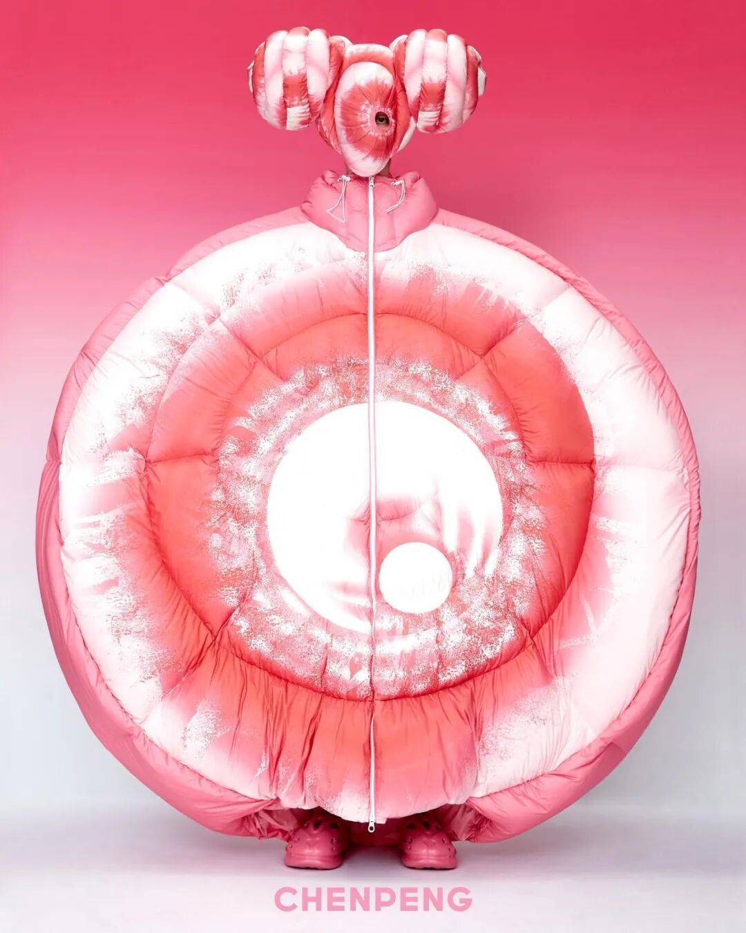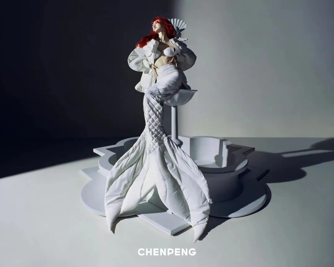 CHENPENG AW23是陈鹏登上巴黎时装周的首秀,本系列在致敬欧洲时装经典的同时,成功地展示了他的标志性设计——超大号羽绒服与雕塑般的立体主义廓形,打造了独特的“羽绒晚礼服”理念。