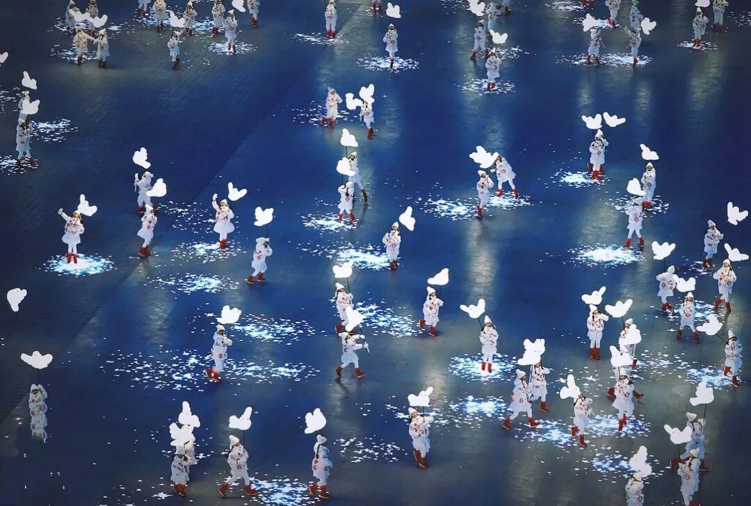 而后的节目中,无论是充满未来科技感的冰球服、象征着《千里江山图》中青山绿水的旗手服、现代感与传统中国结文化完美结合的轮滑服,还是融合了“蔚县剪纸”的“和平小白鸽”童装,这些服饰无一不展现着CHENPENG团队为冬奥会以自身特质对中国文化深意的完美诠释。