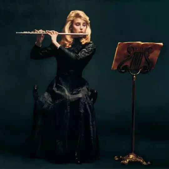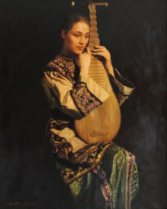 《长笛手》是陈逸飞八、九十年代油画中的代表作之一,曾在多次展览和画册中出现。作品采用古典油画的画法,背景是浓重的暗影,人物的衣服也是黑色的,唯有她金色的头发是亮色的。这样的明暗、冷暖对比更显出画面的厚重与光彩,体现了作者深厚的写实油画修养。