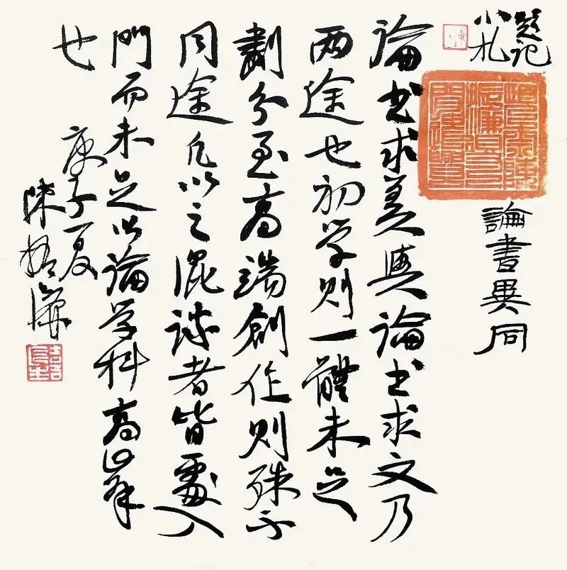 也有人偏偏反其道而行之,认为书法原来的积累已经很强,无法摆脱桎梏,就主张把书法变成纯粹的像西方抽象艺术这样的东西。这两个极端,其实都证明了书法在作为艺术本位立身的过程中,其本体和主体自身一直是软弱无力的,而且是飘忽不定的。