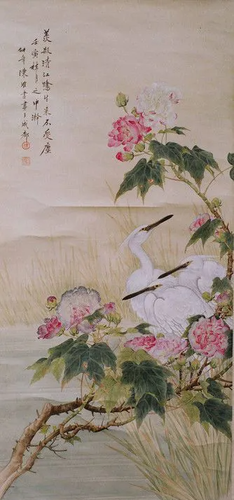 陈仲年(1893年一1966年),四川陴县人,近现代著名画家,擅长工笔人物和花鸟,在渲染技法上汲取西画之长,着色鲜艳而不俗,无论花鸟虫鱼栩栩如生,跃然纸上。