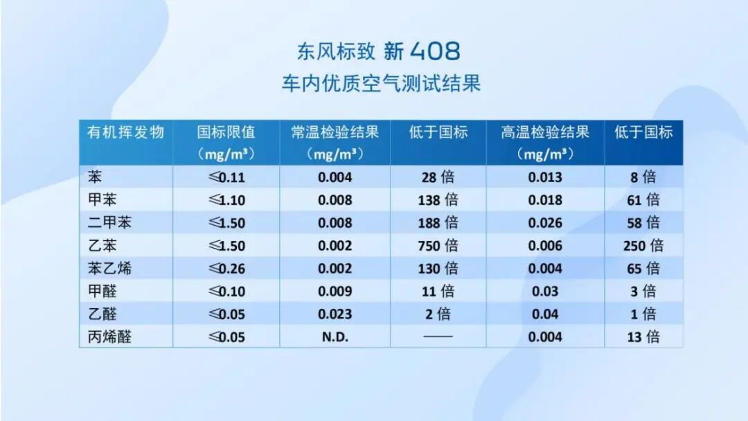 更重要的是,在近期中汽研儿童优先(绿色座舱)的认证中,东风标致新408在“车内优质空气”、“婴童级材料”、“电磁辐射安全”三个维度测评中都表现出色,成为首款通过儿童优先(绿色座舱)认证的十万级家轿,让更多消费者体会了一把”家轿也是家“的安心感。