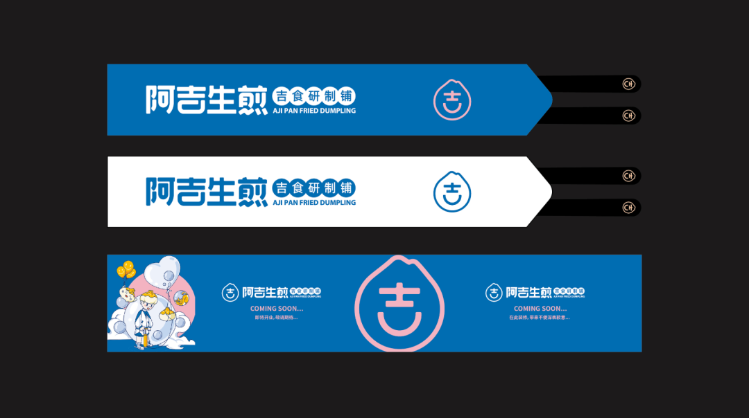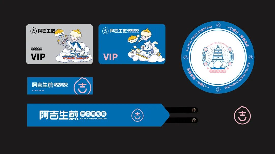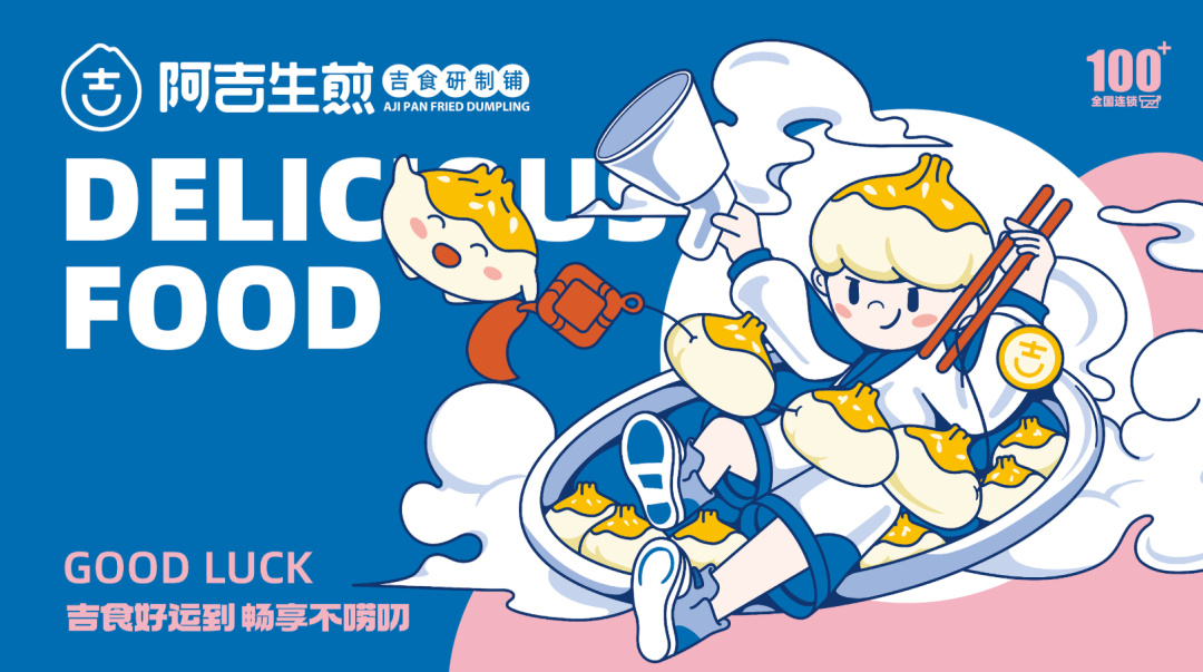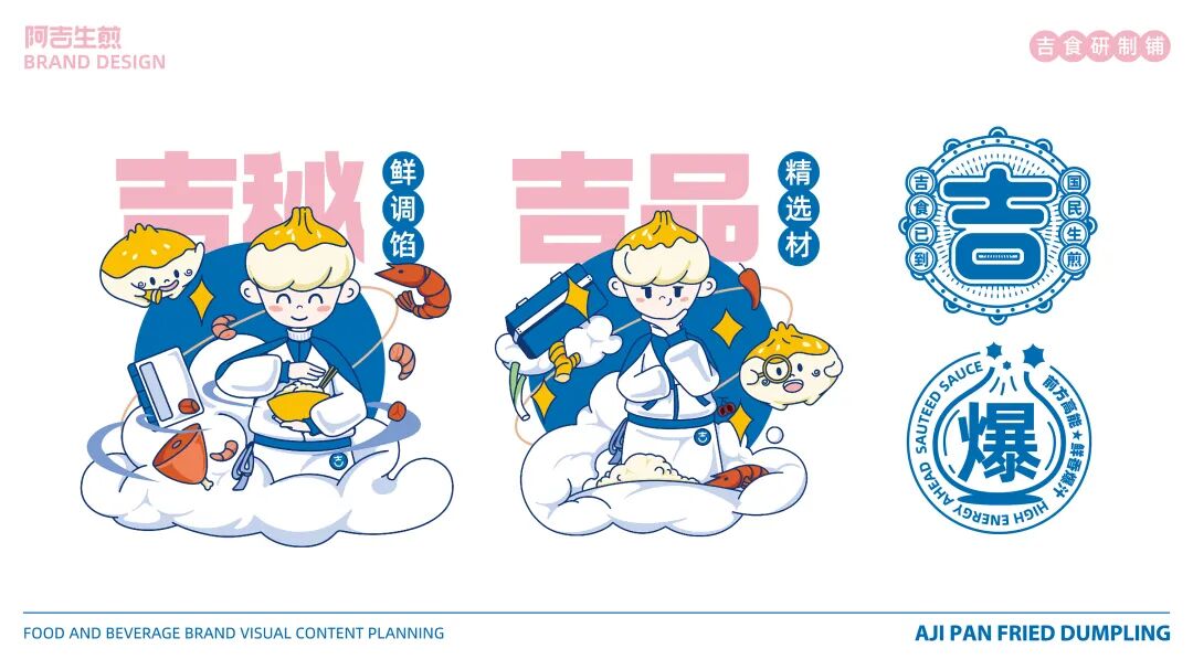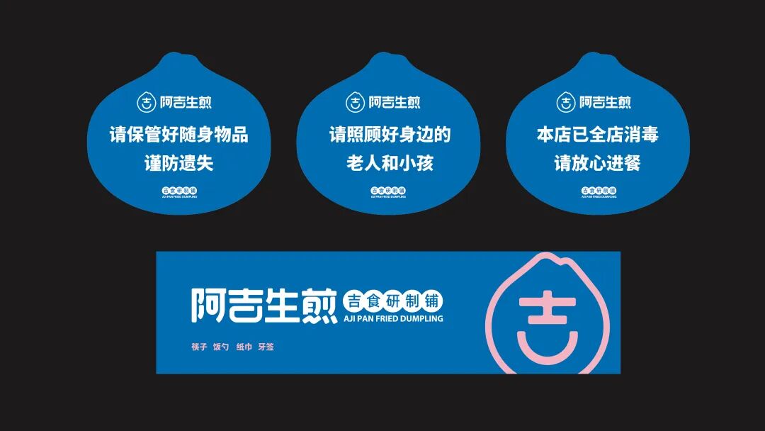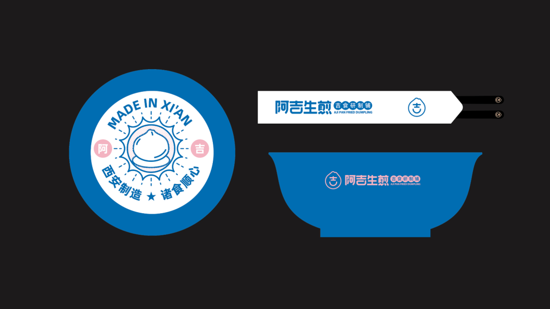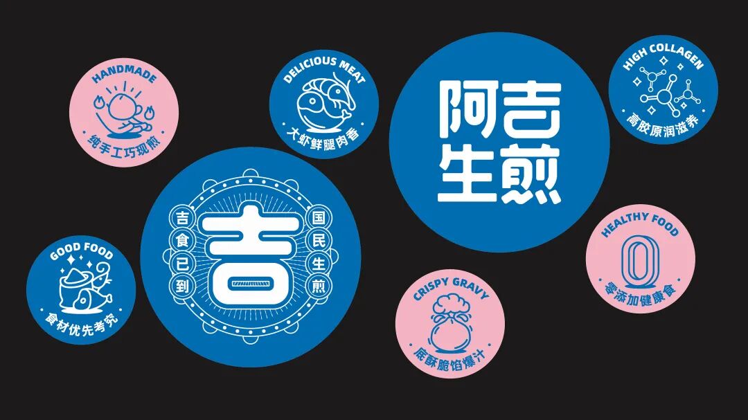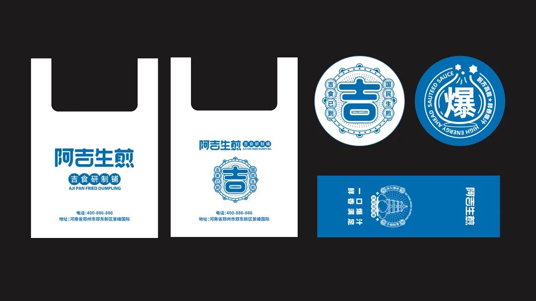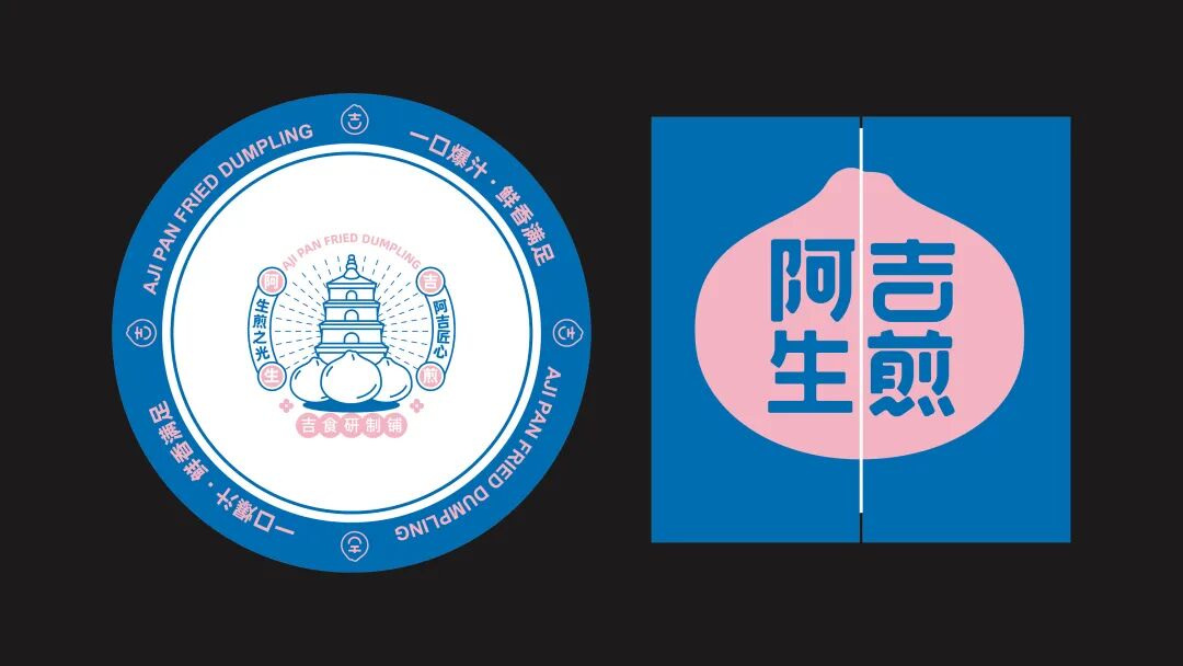 以“吉”字做图案延伸,抽象出生煎包的形状