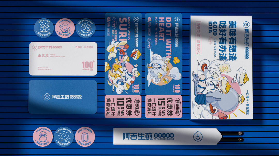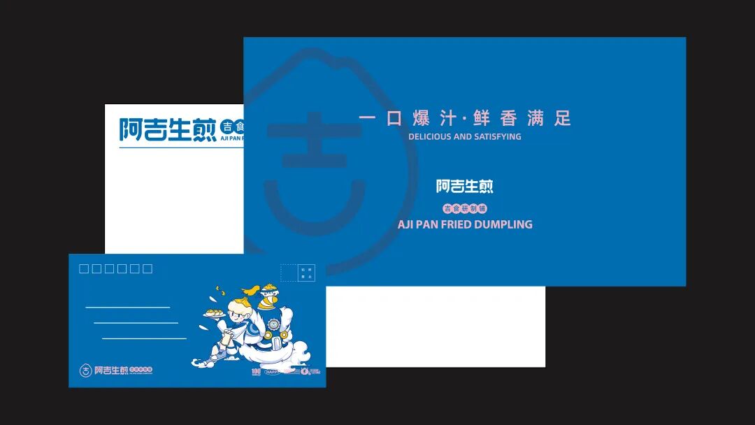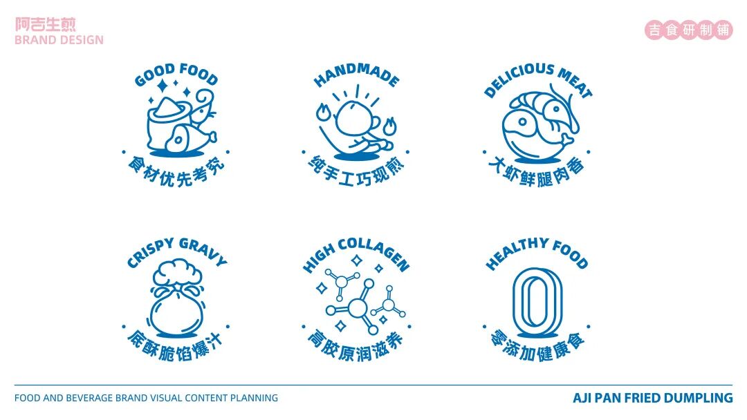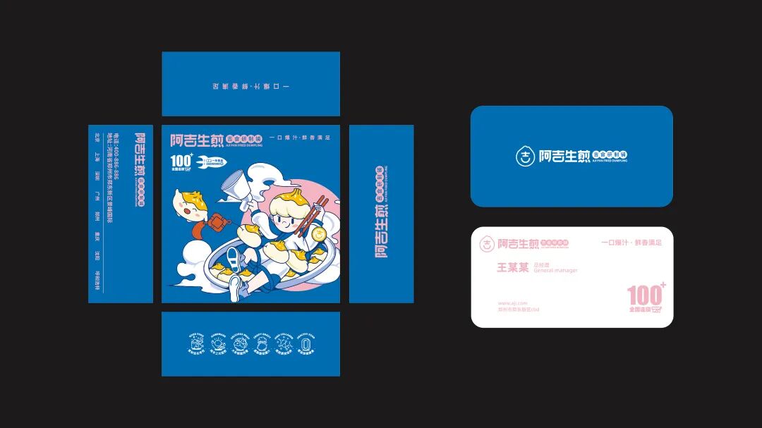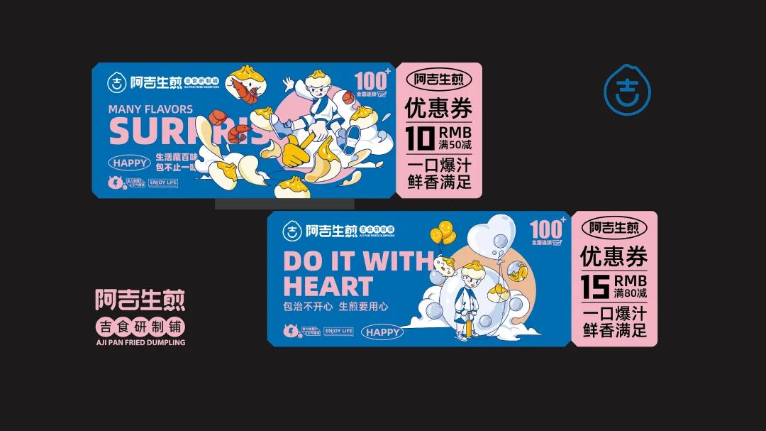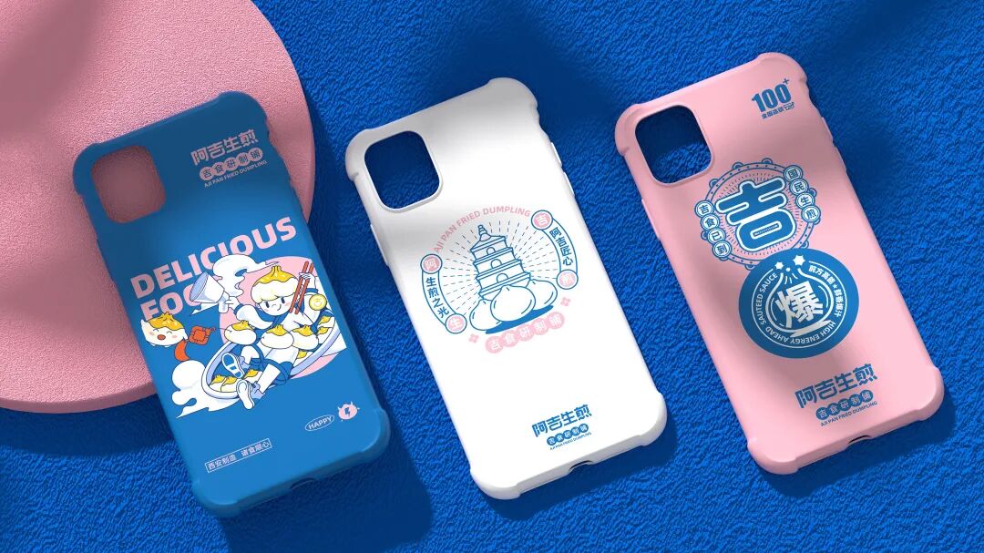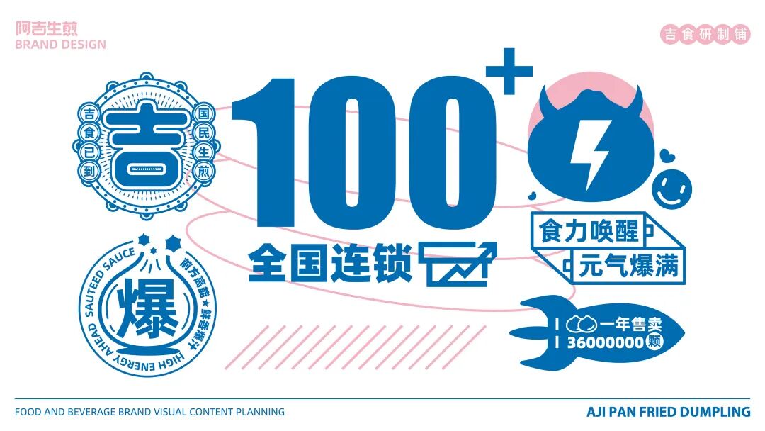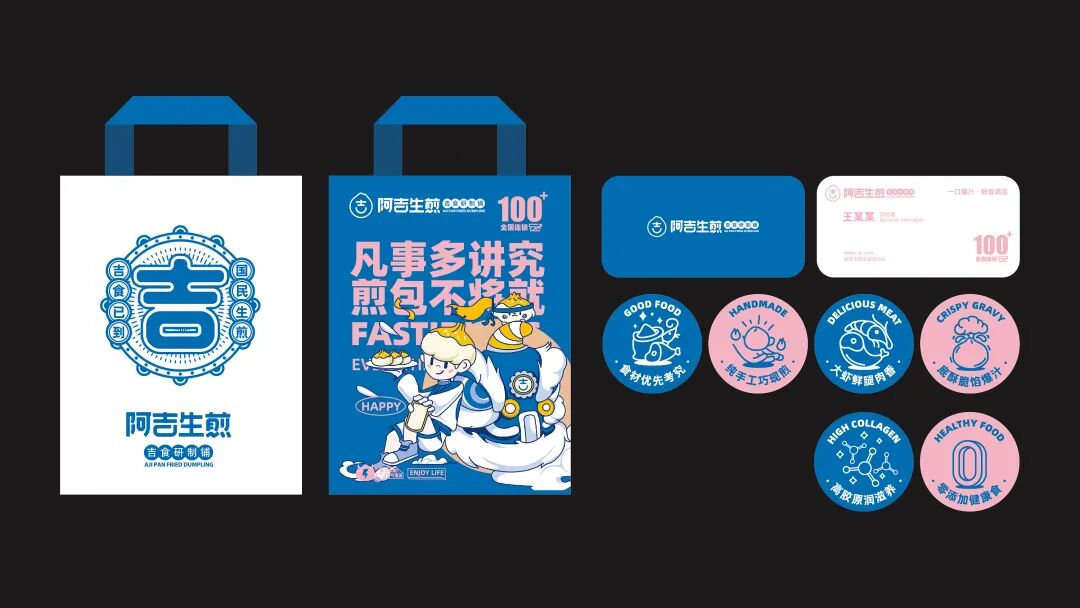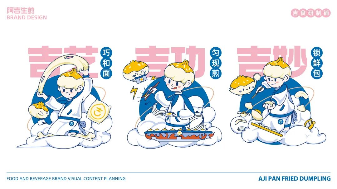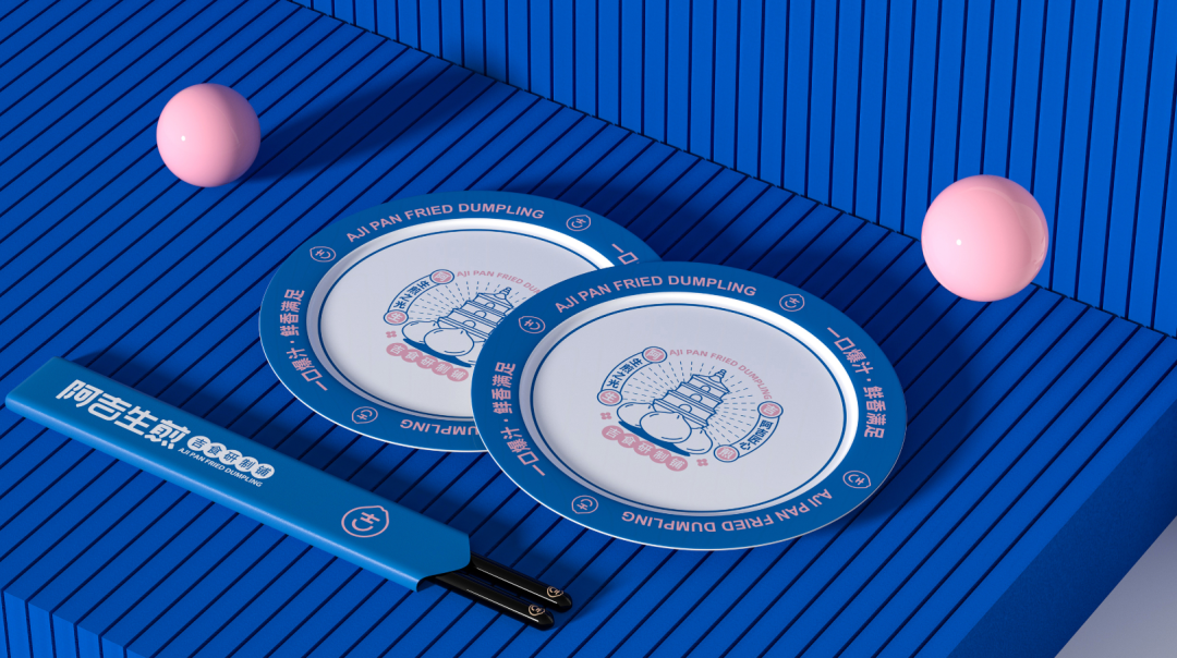以“吉”字做图案延伸,抽象出生煎包的形状