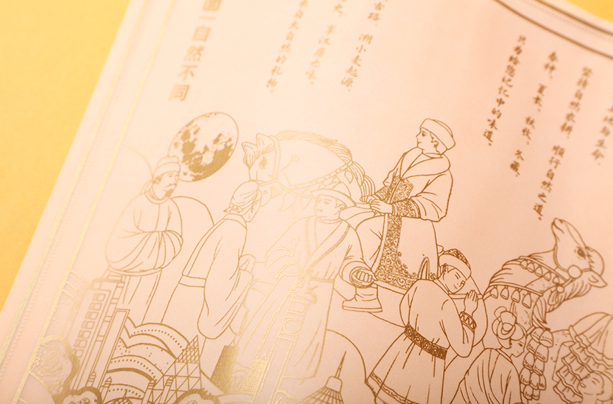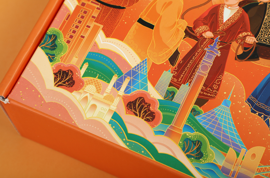 橙色裱纸搭配内盒烫金工艺设计的小画报