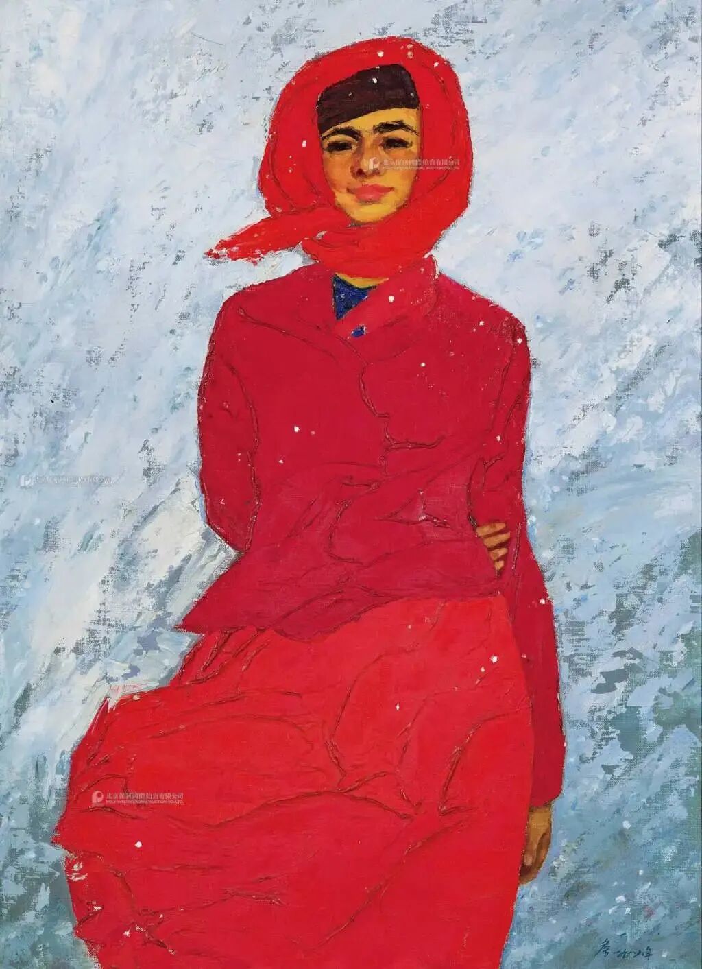 “现当代艺术日场”最引人瞩目的作品就是詹建俊先生创作于1988年的《飞雪》,此作的画中原型不但是詹先生最重要的代表形象,更是中国艺术史上的一个标杆性符号。此作以50万估价上拍,最后以125万被9055号牌竞得,最终143.7万元成交。
