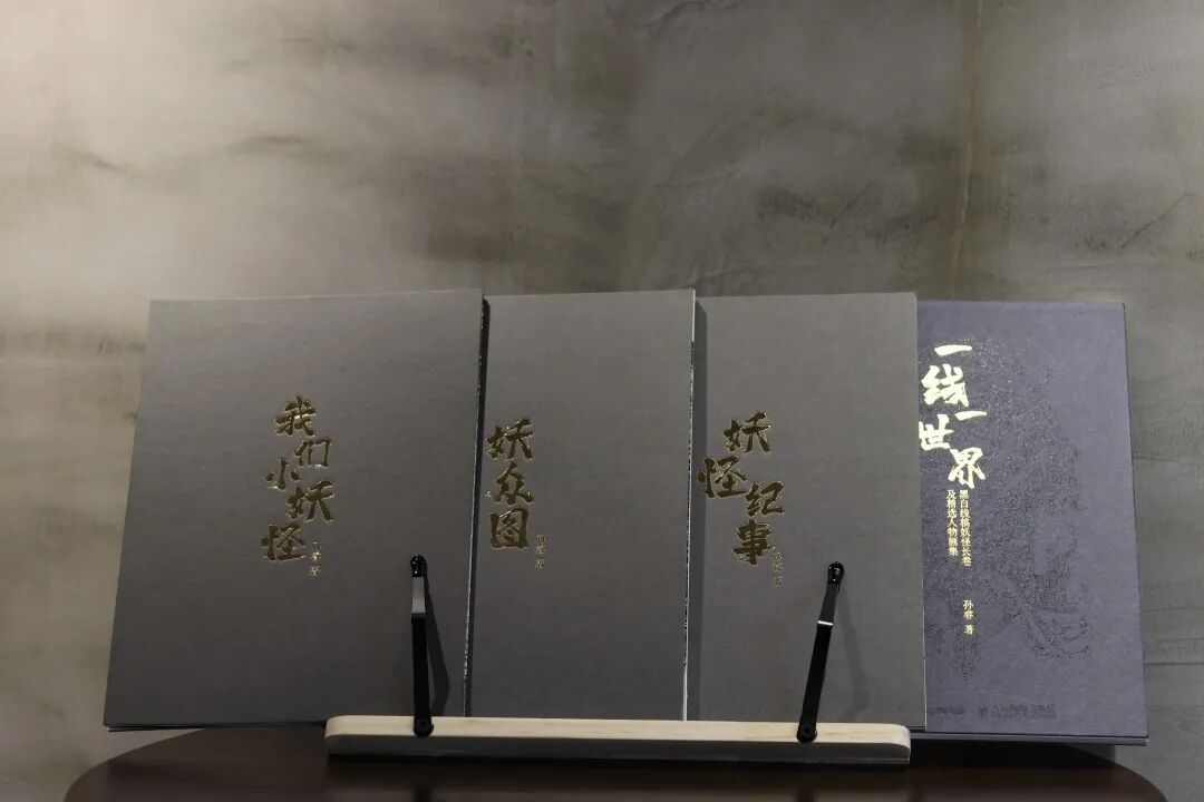 包含《妖怪记事》+《我们小妖怪》+《妖众图》长轴画册+《一线一世界》幻想图集,共包含四本画册