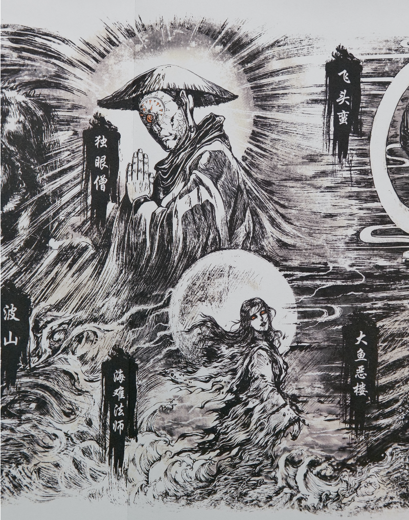 来自不同文化、不同国度的神鬼妖兽,都能用线条来描绘。简单的线条,却能绘制出极致的细节。