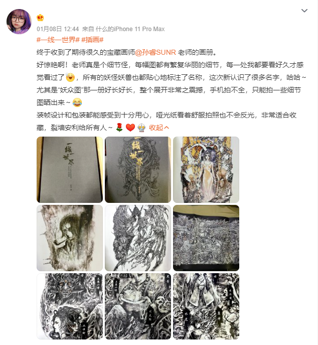 各种细节与华丽的线条终不是图片可以足够表现,如果你喜欢神鬼文化、黑白线稿、幻想风格图画,一定要感受一下《一线一世界》的实体书带来的震撼!