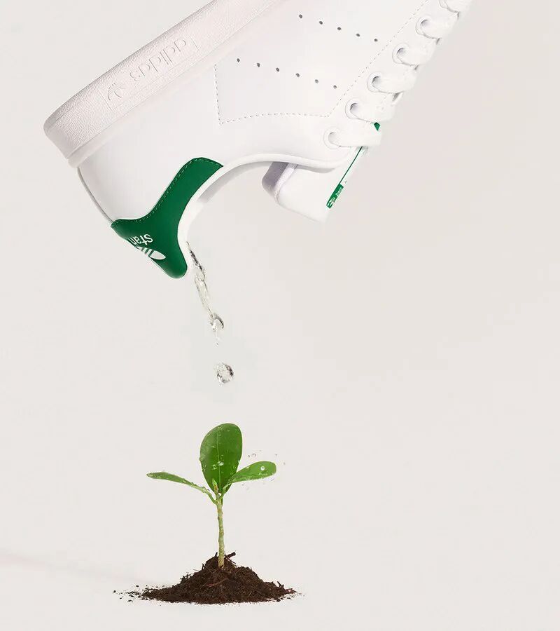 除了与 Parley 的合作外 ,可持续性对于阿迪达斯还意味着使用更少的塑料和更少的动物皮毛等,生产、制作的原材料。在 2020 年,阿迪达斯推出了多款经典的纯素版本平底鞋及运动鞋,其中就包括阿迪达斯 Stan Smith。