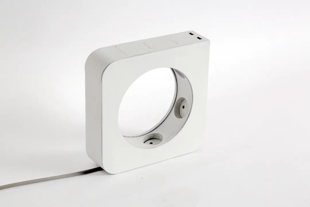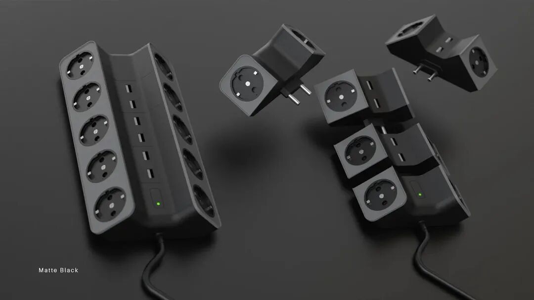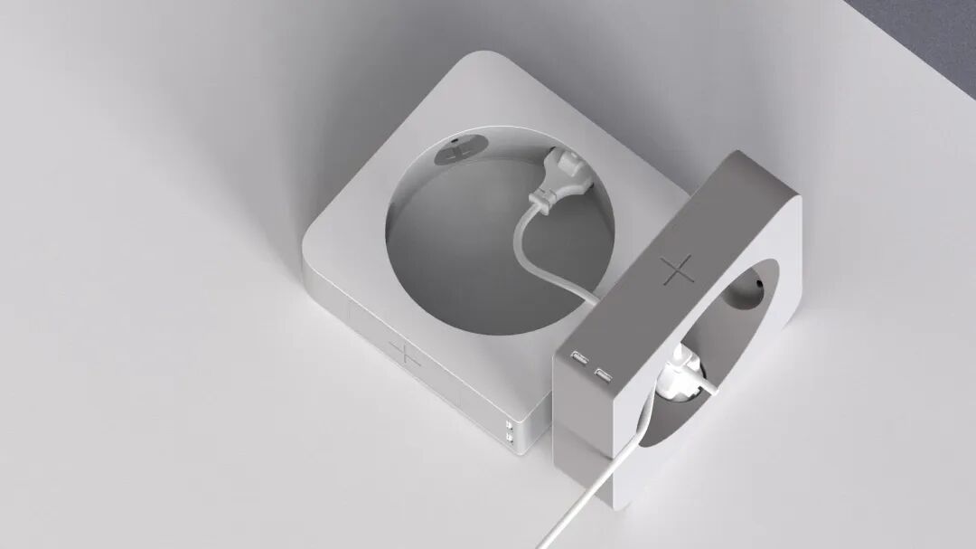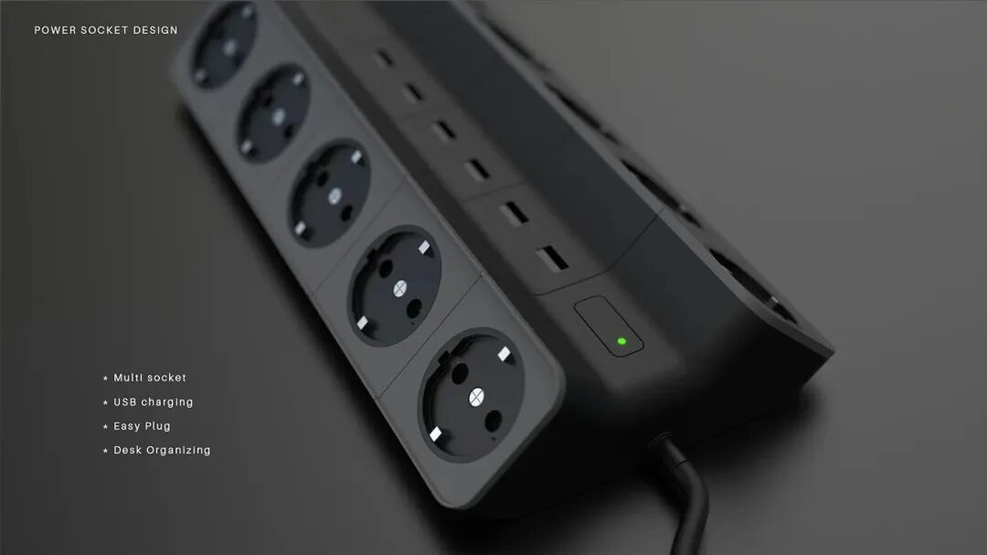 该设计与典型的长方体电源板不同,此电源板采用甜甜圈形设计。圆形电源板可以垂直放置,因此减少了灰尘进入插座的问题。电源板可以旋转,因此能够更容易将设备插入插座。该设计可以用于两种用途,即放在桌子上或挂在墙上。