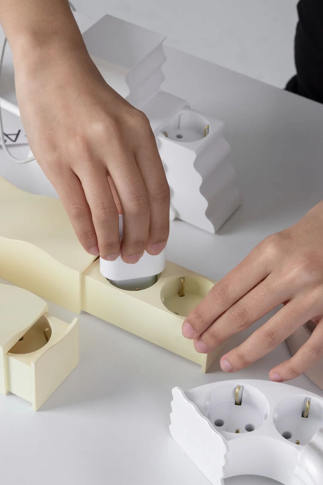 A'union的设计极具雕塑感,它隐藏了内部的插座,拉出抽屉可以看到隐藏的插座,具有各种形状和尺寸,每个配电盘有 2 到 4 个插座。根据您的需求和您拥有的空间,插座可以放置在地板、桌子或架子上,不使用时,它看起来就像一件装饰艺术品。