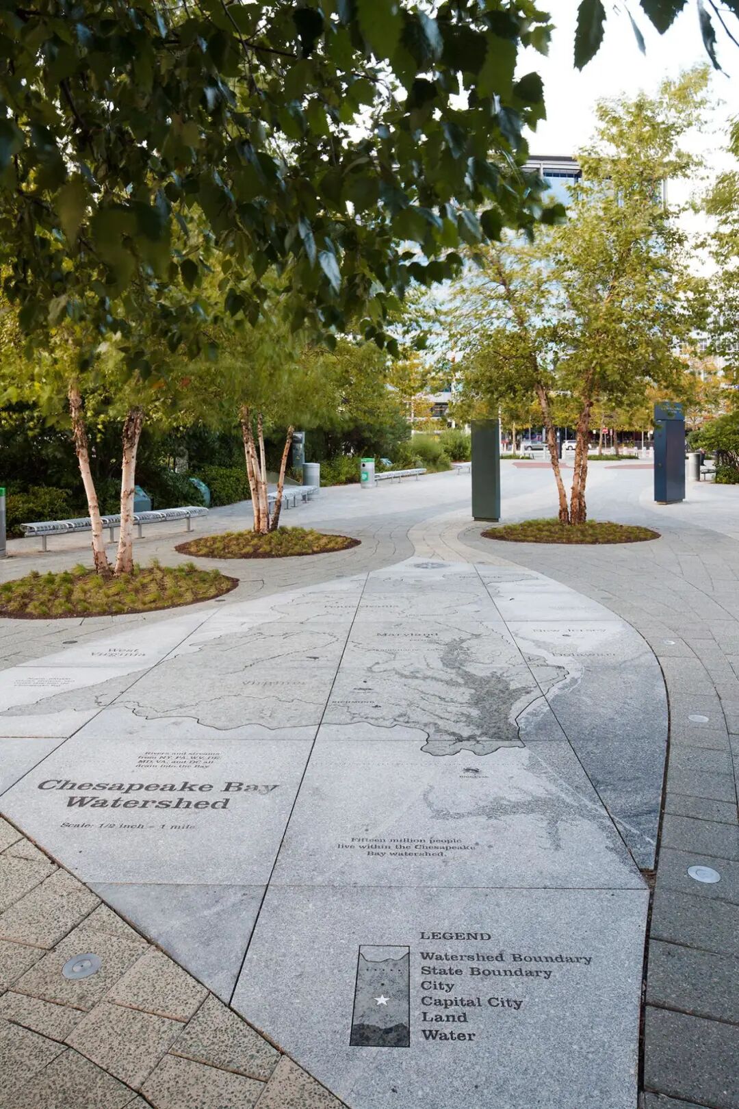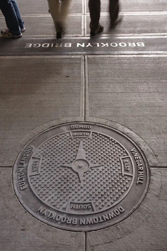 镂空的地面标识、鸟瞰地图、路标等构成的多维导视系统©网络