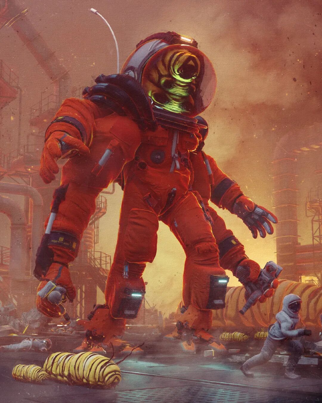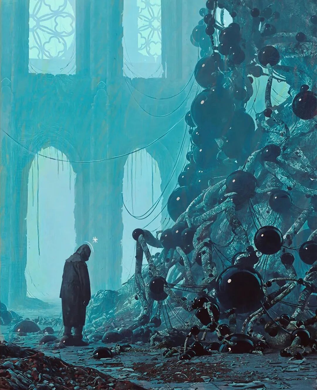 插画师Mike Winkelmann笔下的插画作品充满了末日风格,颓废之中又带有一点恶搞的小趣味。他热衷于表达对未来科技的痴迷和恐惧,作品风格可以说是充满了抽象、奇幻、怪诞或荒诞。