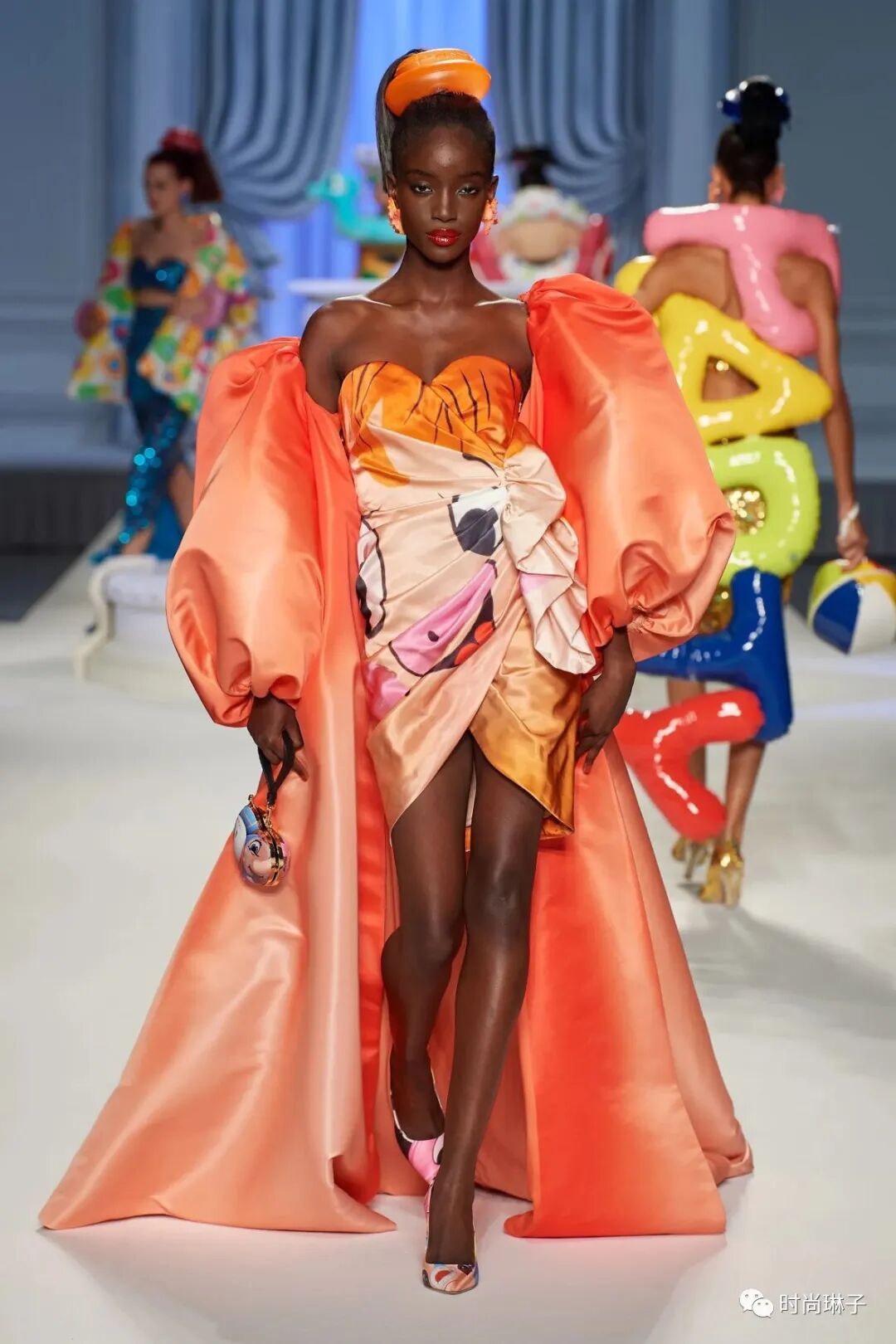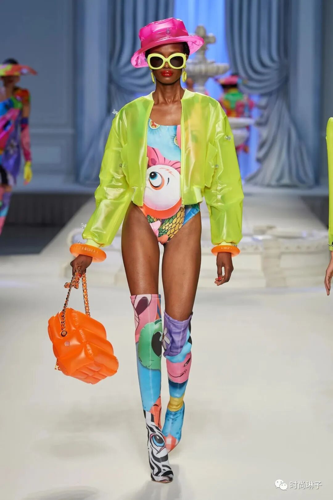 Moschino 2023春夏系列整体的色调鲜艳且明亮,轻松乐观的氛围弥漫着整场大秀。