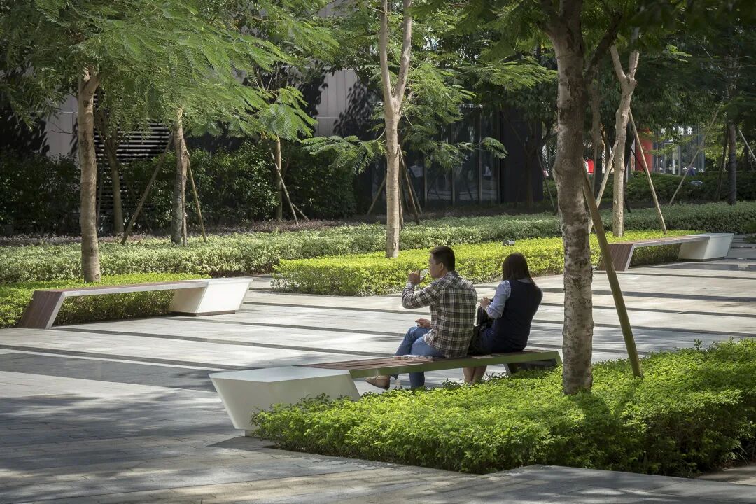 这个舒适又便捷的对外开放的园区景观,让每天上下班的员工得到了更愉悦放松的体验,也让周边的居民多了一个可以社交的公共场所。