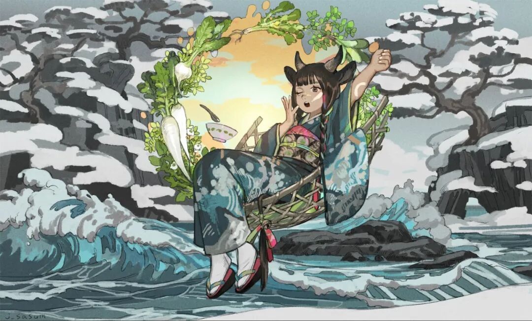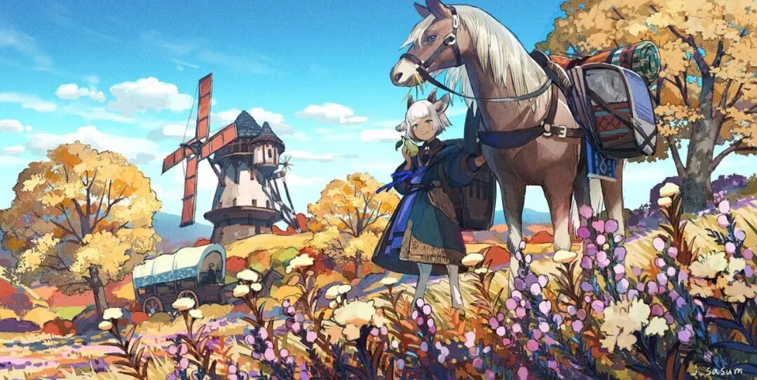 日本的插画师さすも次郎,作品色调浓郁,画面精致,有着充满童话色彩的日漫风格。