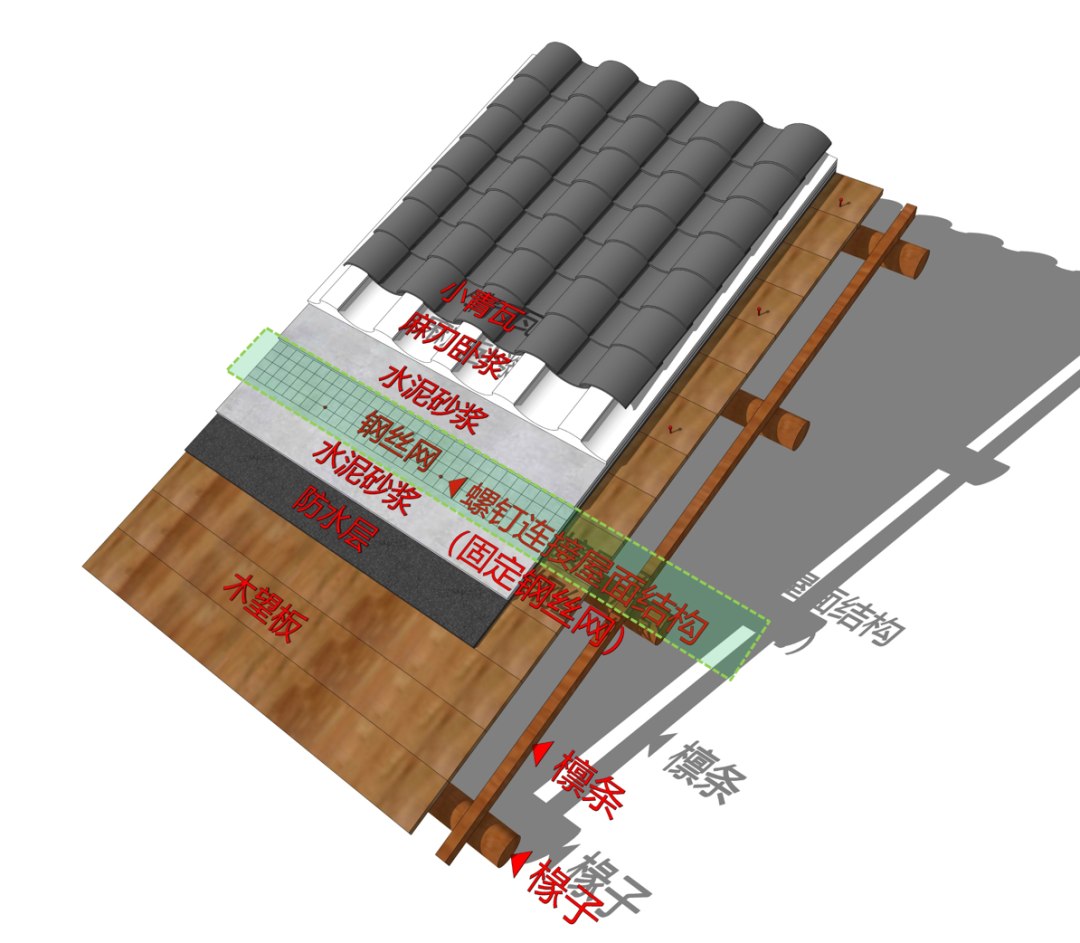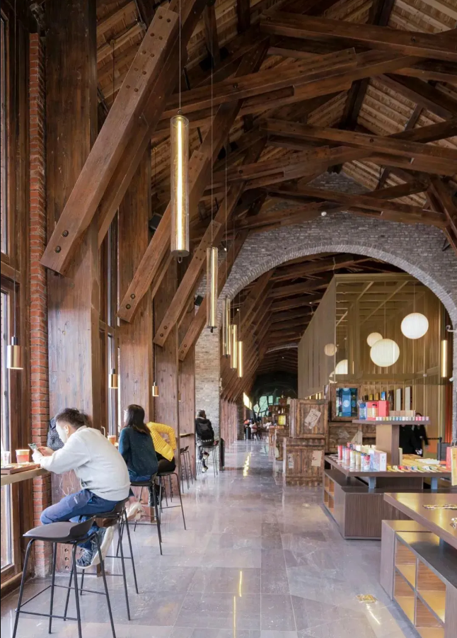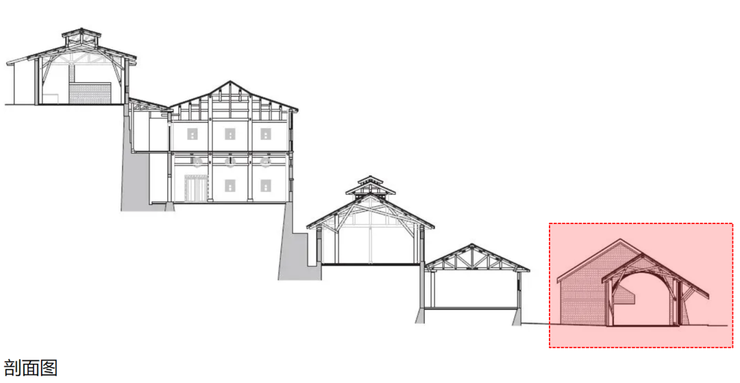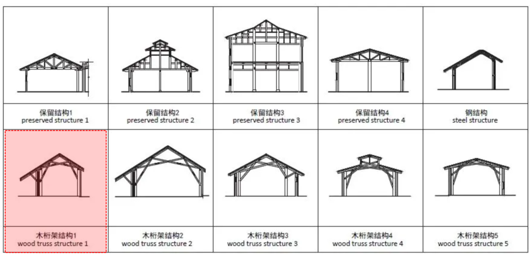 而出现事故的楼,采用的是新的木桁架结构1(如上图),用工程木模拟古代”虹桥结构”,这样可以发挥胶合木(即工程木)的能力,同时也跟100年前的木结构之间形成一个对比。
