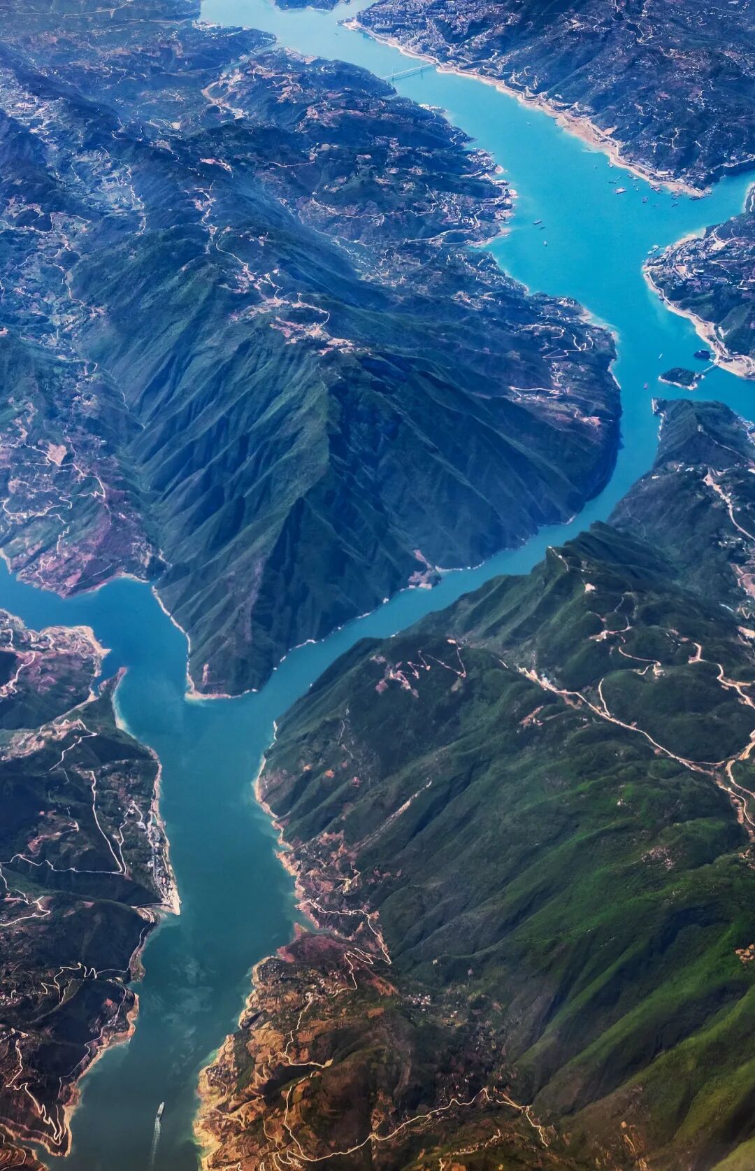 河流垂直于山脉,这听着就会纳闷,垂直的话可怎么流动啊?因为有了山脉的阻挡,河流应该是流不过去的,但是重庆的水就是这么猛——