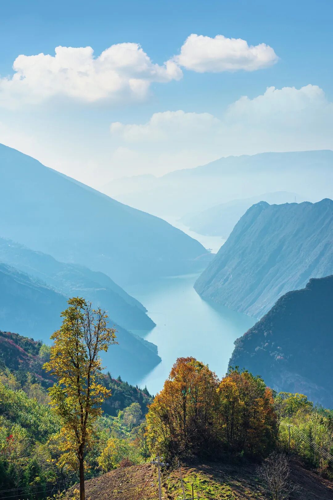 瞿塘峡口的布满彩林的山坡。图\视觉中国