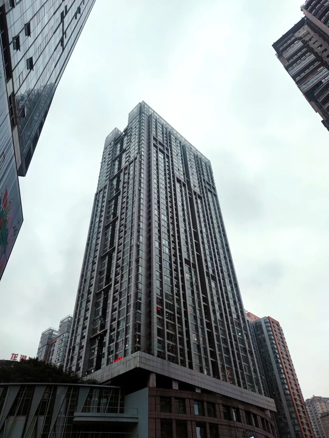 它分为ABC三栋,并在8层由连廊联系,共同形成一个6000多平方米的空中花园。其中A栋乃是本文的主角,高160米。内部每层十二户50~80平方米的住宅以及酒店式公寓,配备低区、高区、货物电梯各两台,是当时观音桥商圈的第一豪楼。因此,彼时的红鼎国际,的确是配得上“国际”二字的。除了提前进入小康的富贵家庭,便是许多大小公司入驻其中。俯瞰观音,好不风光。