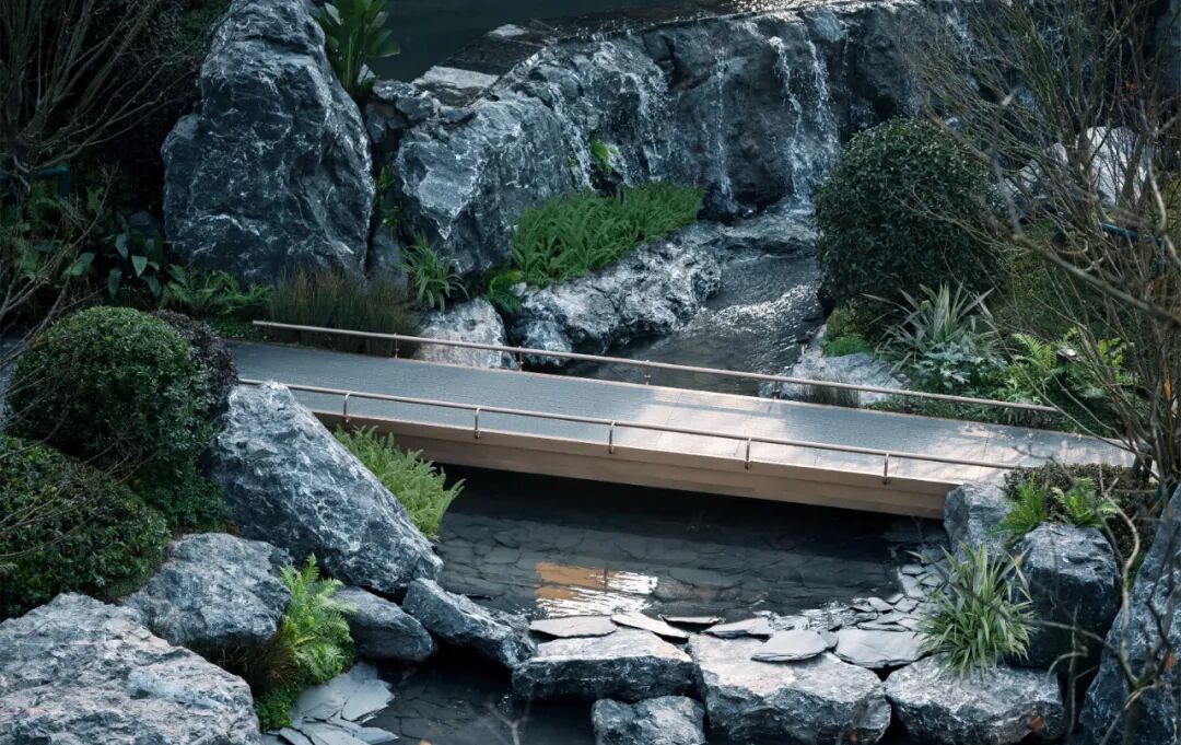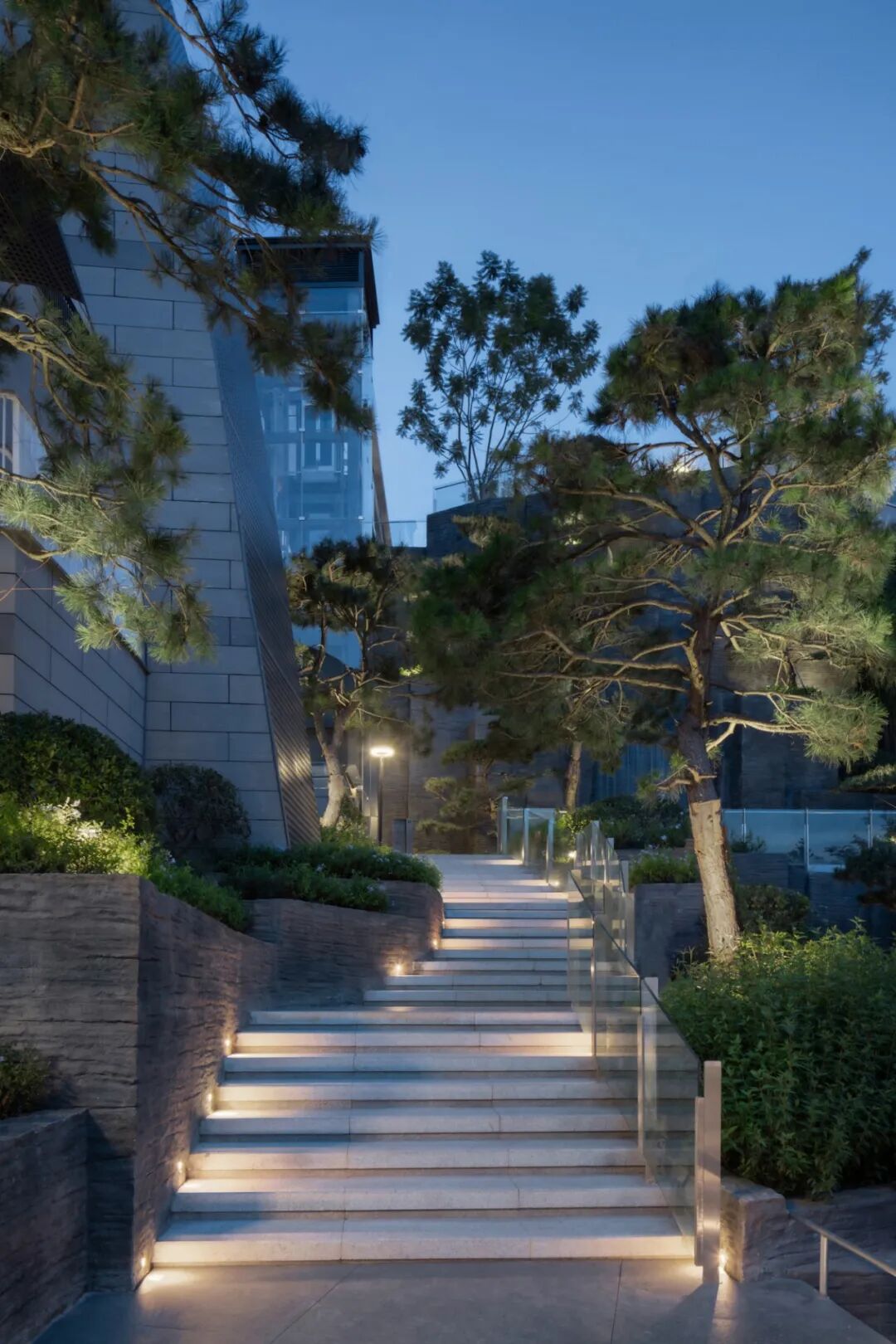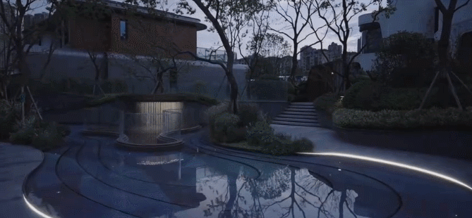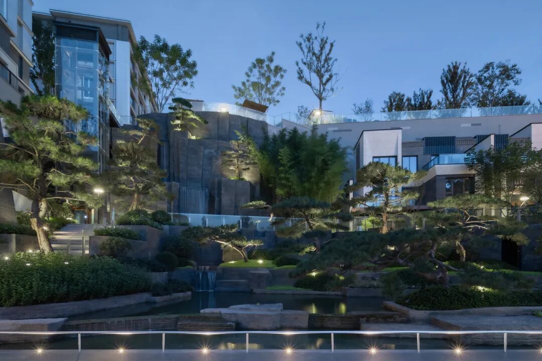 设计希望以“星光引领,漫步天际”的手法利用景观系统化解高差于场景之中,营造⼀条贯穿全区并串联天际庭与二期大区的“星光⾠道”串联一轴双庭三院的景观格局,使得公共空间和私享空间有机隔离,营造高端典雅的生活感受。
