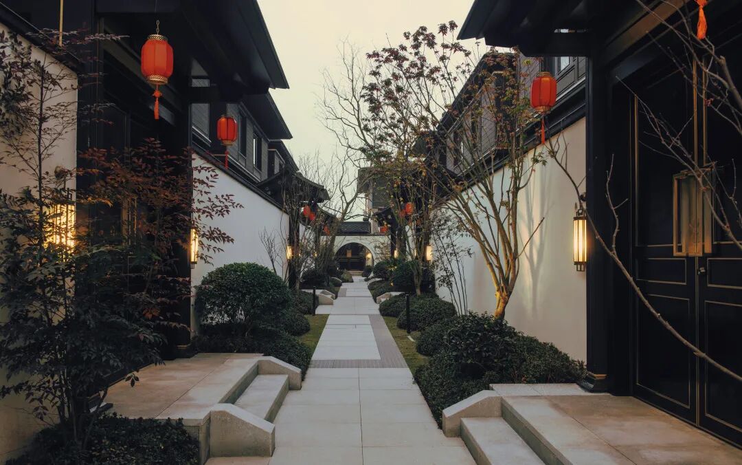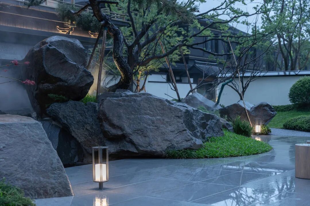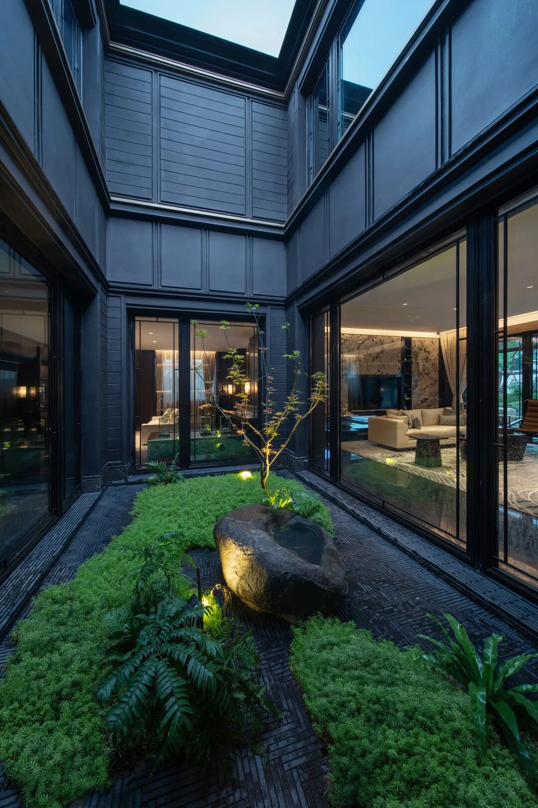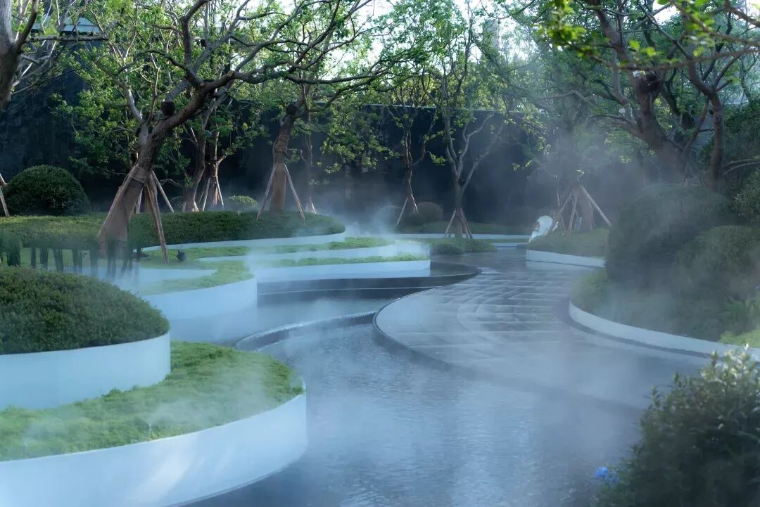 设计希望以“星光引领,漫步天际”的手法利用景观系统化解高差于场景之中,营造⼀条贯穿全区并串联天际庭与二期大区的“星光⾠道”串联一轴双庭三院的景观格局,使得公共空间和私享空间有机隔离,营造高端典雅的生活感受。
