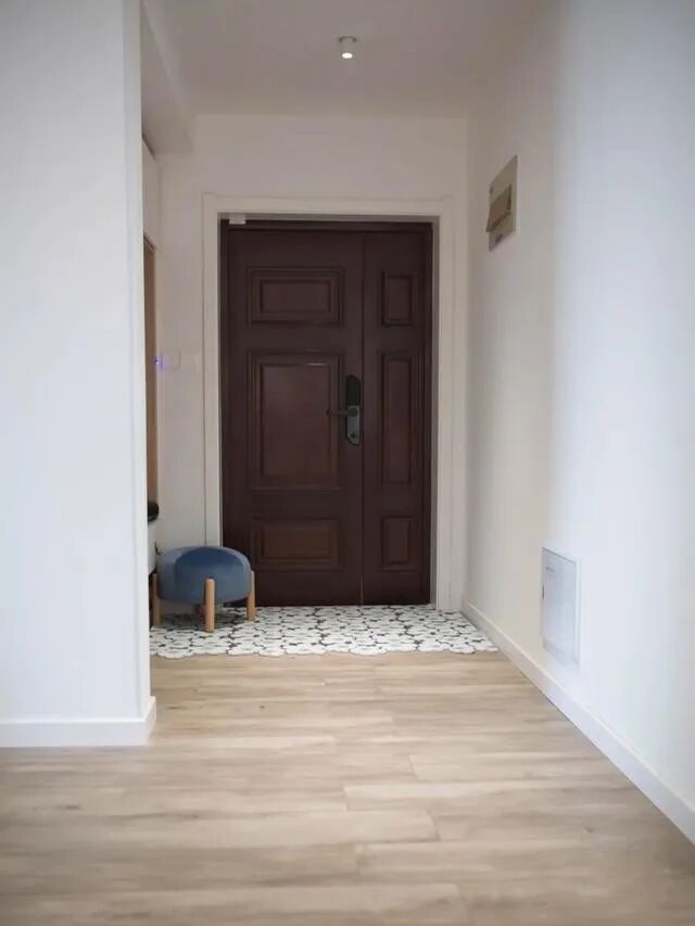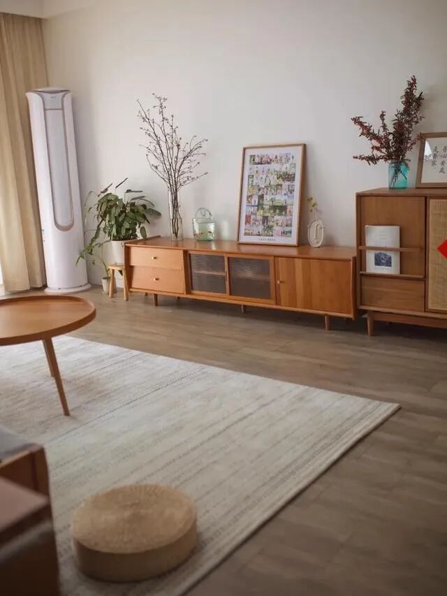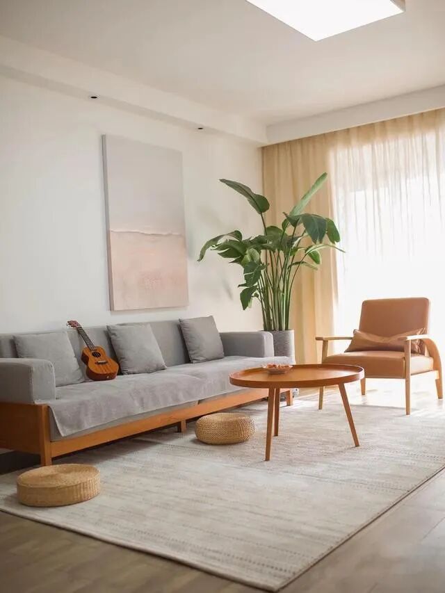 客厅依旧沿袭了原木地板+大白墙的设计,天花除了绕了一圈双眼皮外,就没有做任何造型,不要层高又显得有层次感,左右两侧各安装一组筒灯,加上中心位置的内嵌灯,简简单单,朴实自然;