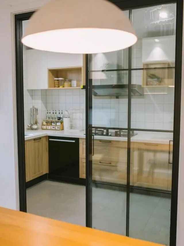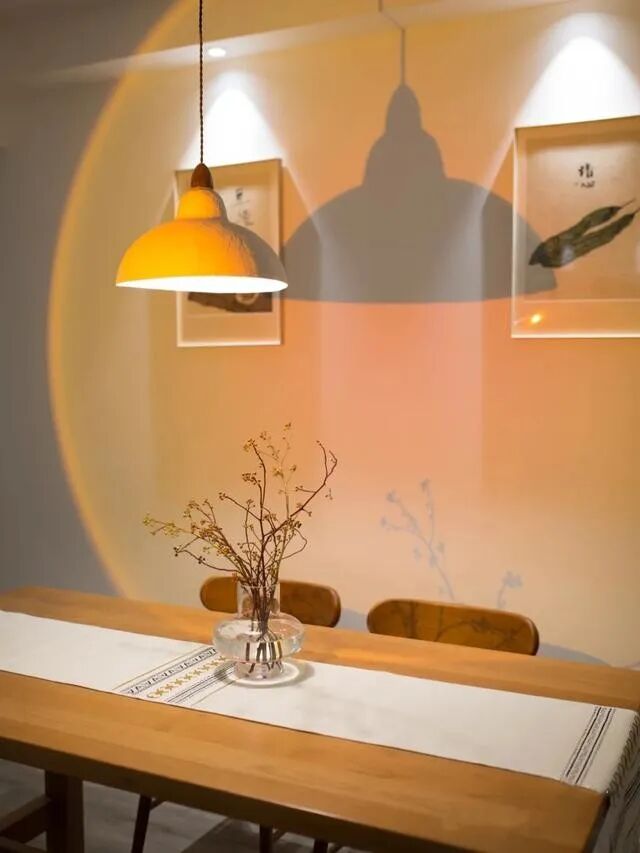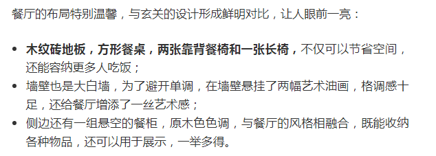 绕过玄关,就可以看到餐厅了,客餐厅其实是连在一起的,中间虽然没有任何隔断,但是这两个区域的通道有两堵墙,加上家居摆设不一样,从视觉上也能区分去两个区域,又能共享同一光源,在视野上就显得宽敞明亮了;