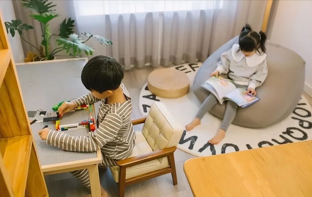 其实这里之前是玩具房,里面摆放很多玩具,给孩子留出一些活动的区域,也方便女主人打扫卫生,现在孩子大了,就直接改成书房了,里面放置了大量书籍,隔音特别好,平时工作、学习都不会被打扰。