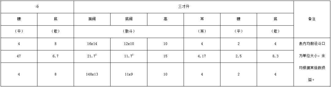 (二)斗栱之身、腰底(宋式称耳、平欹)比例,与宋清官式亦迥异,即底部特高,腰殊短,而耳尤甚也。