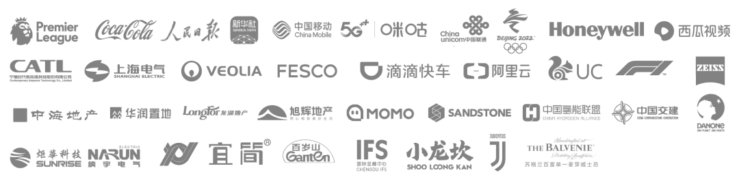 合作过人民日报、英超联赛、中国移动、中国联通、字节跳动、阿里巴巴、百度、腾讯、宁德时代、FESCO、威立雅水务集团、国家能源集团等品牌。