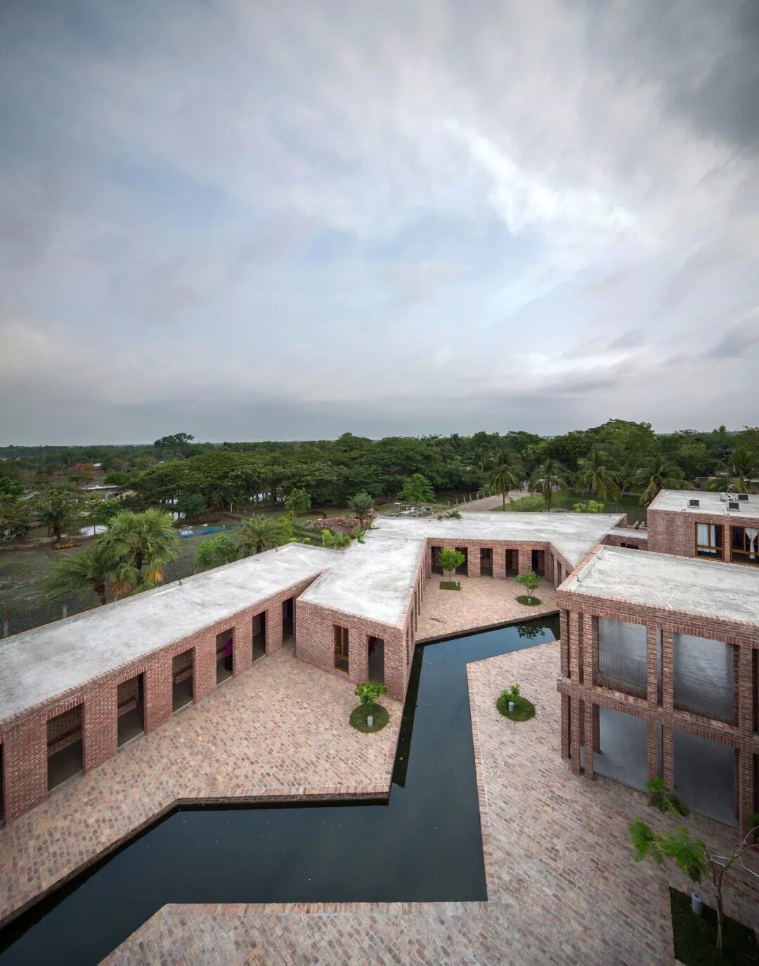 院区总体设计概念自孟加拉河沿河景观,与环境融为一体。建筑布局高效、合理。设置了多个庭院组织自然通风。