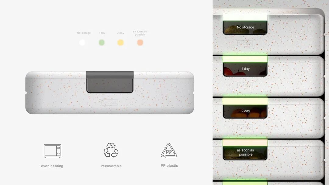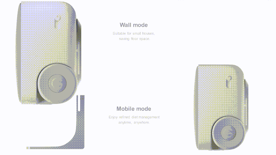 这是一款便携式壁挂冰箱设计,旨在帮助用户更方便地管理食物。它可以挂在厨房的墙上,为您节省空间。还可以在外出时从壁挂支架上取下来,像手提箱一样方便携带。