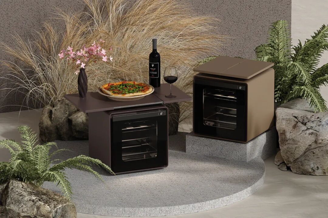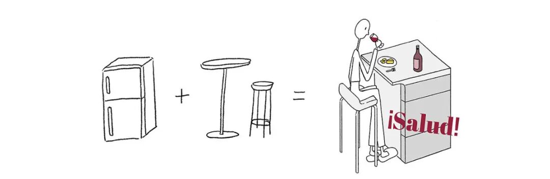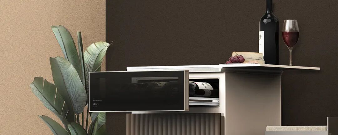 这款产品结合了一个小冰箱和一张吧台,打造你的私人酒吧!冰箱分为三部分:葡萄酒冰箱、普通冰箱和冷冻柜。