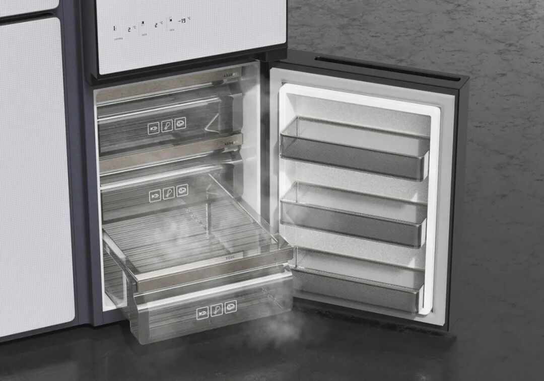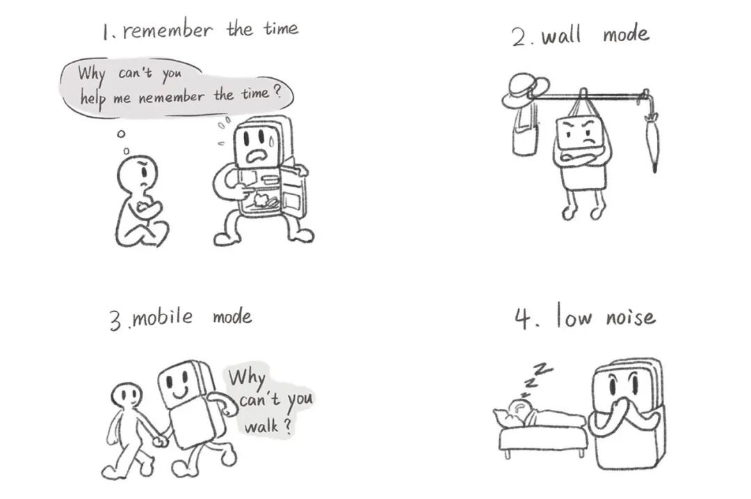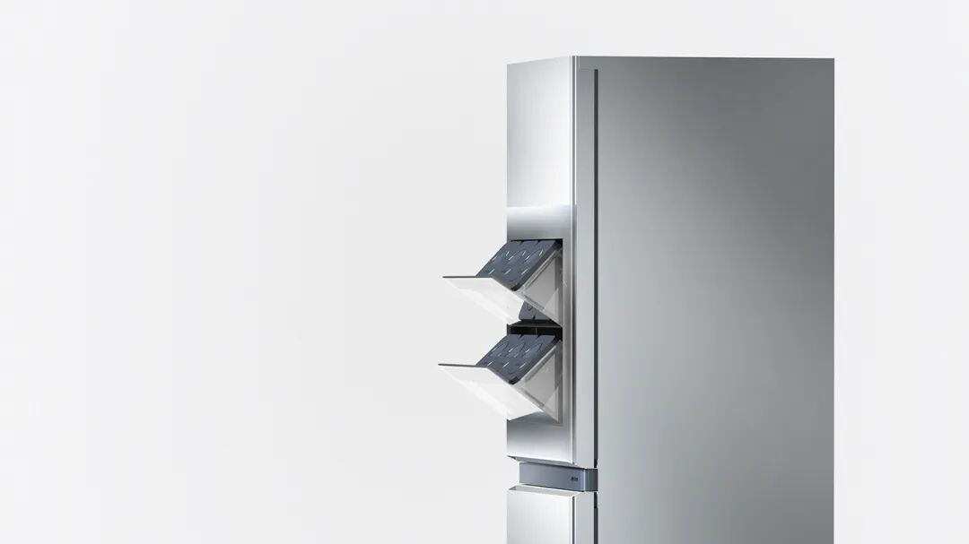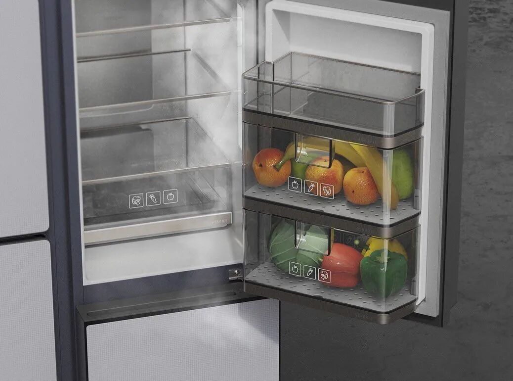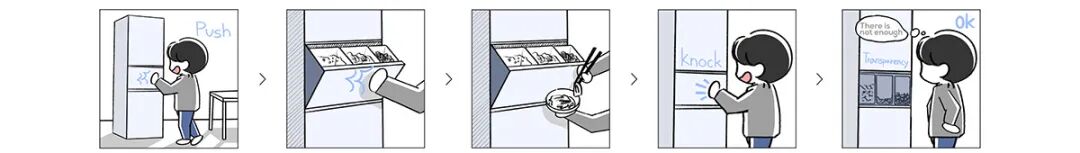 冰箱的每个部分都经过仔细考虑,用于存放物品的种类,以及这些物品是否应该放在儿童接触不到的地方。冰箱门的外侧有一个简单的UI,可以用来调节每个部分的温度。